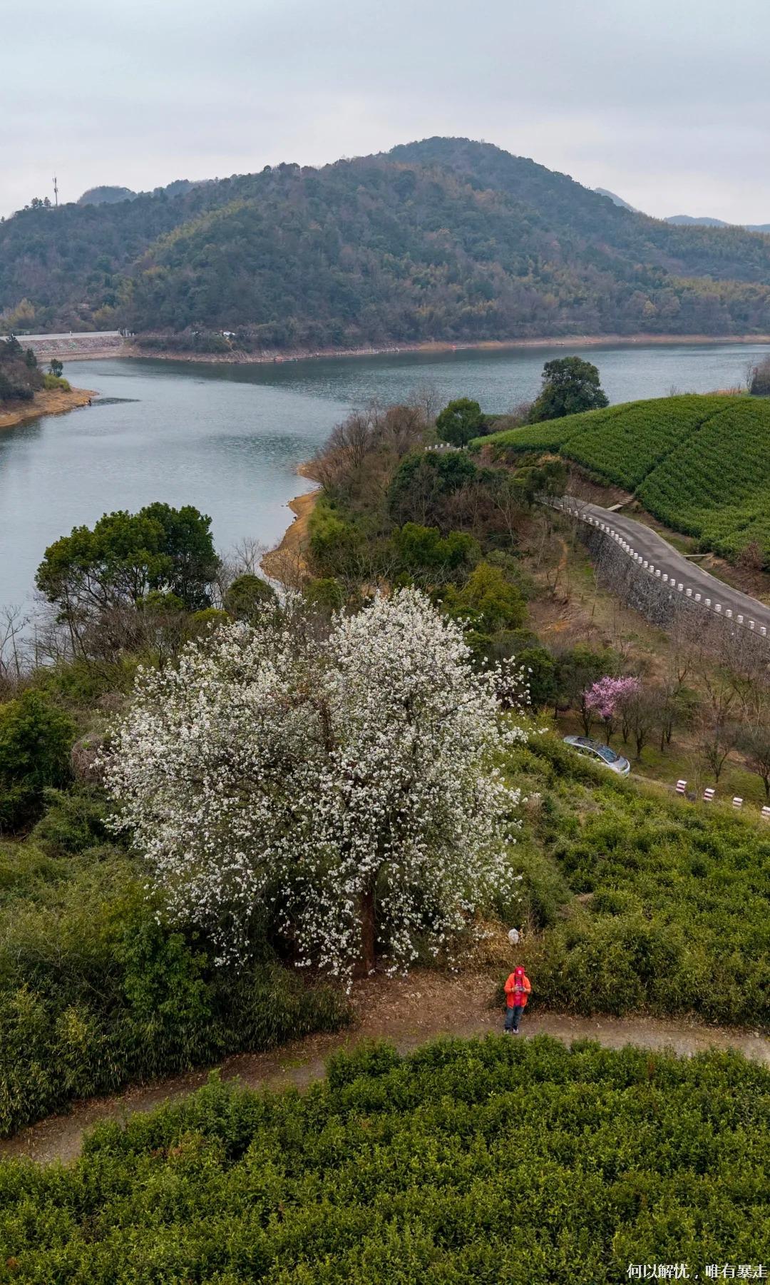 10:45左右,到达徒步起点,春天的徒步,一半是山风,一半是花香,水库、茶园、古寺、一树雪白梨花,人少清净,太治愈了!像席慕容那首诗里写的: “如何让你遇见我 在我最美丽的时刻 为这 我已在佛前 求了五百年 求它让我们结一段尘缘”。沿着水库边的马路走,运气好还能遇到猴子。