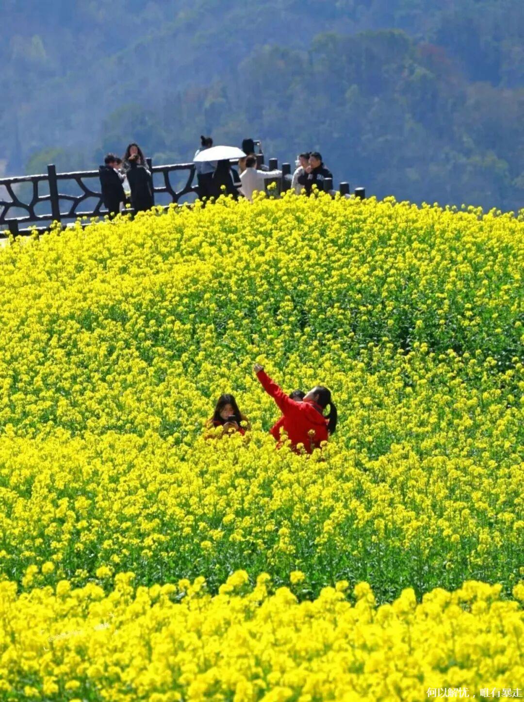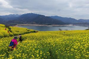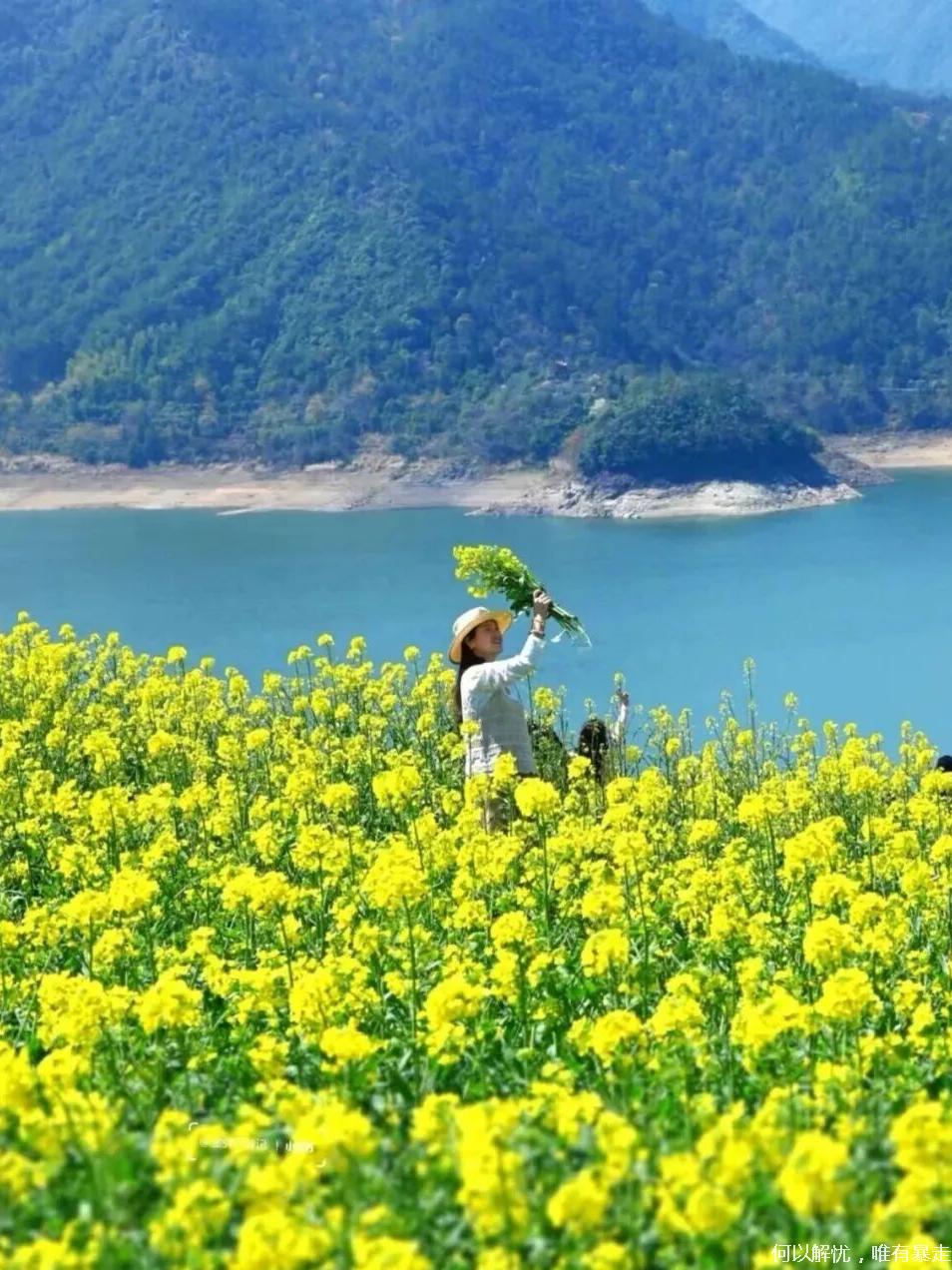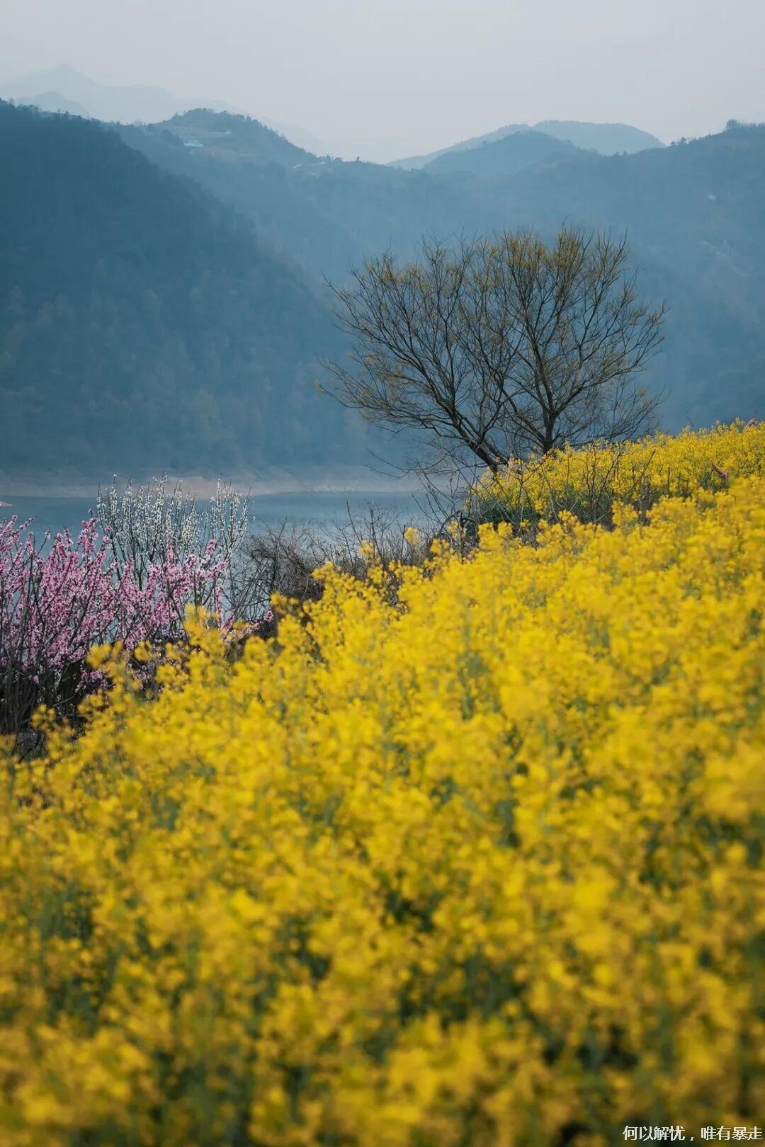 亮点2:沃洲湖——为唐诗之路精华地段,湖山相映如画。春季立体油菜花海沿坡铺至湖面,与桃林、樱花粉黄交错,山水花海同框,景致绝美。漫步湖畔林间,浪漫闲逸,堪称现实版山水仙境,春日打卡不容错过。
