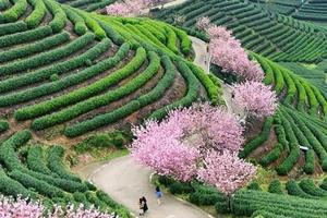 11:00左右,到达拔山村附近,下车穿越村庄,沿着拔山步道进入茶园游玩。可前往拔山头徒步,登上山道,山中土路为主,爬升下降坡度较陡,充满挑战,有横木条防滑,全程约9km左右,爬升约400m左右。可也可就此下山,在茶田樱海中漫步,有文艺咖啡摊、村中制茶厂、茶叶特产店等多种玩乐可以打卡,吃吃喝喝。