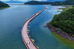 全程14公里环湖闭环,平缓无难度,新手友好。串联吉尼斯海上浮桥福桥、天妃之戒、爱心廊架、桐照渔港、风车山、堤坝碧湾,一步一景。一路碧海蓝天、湖光与海风相伴,可徒步、可骑行。