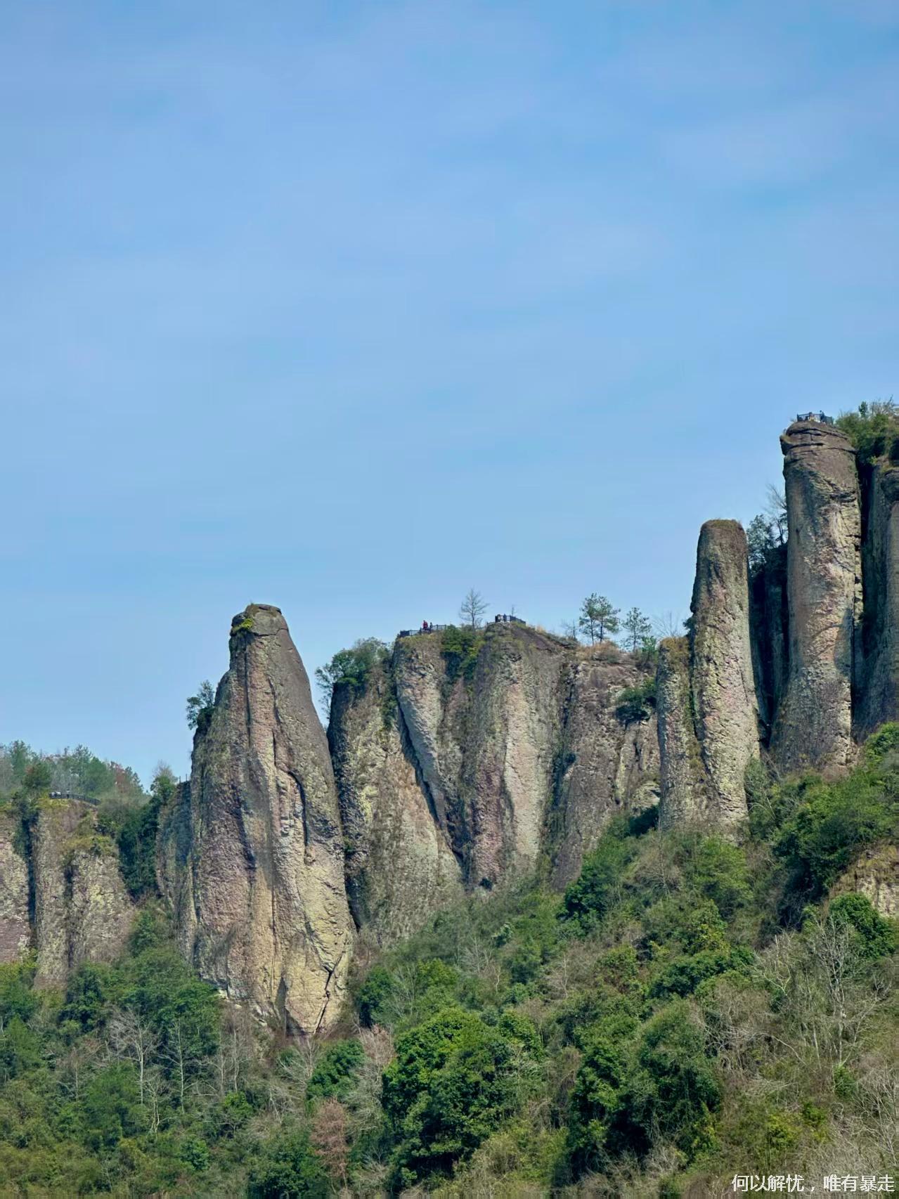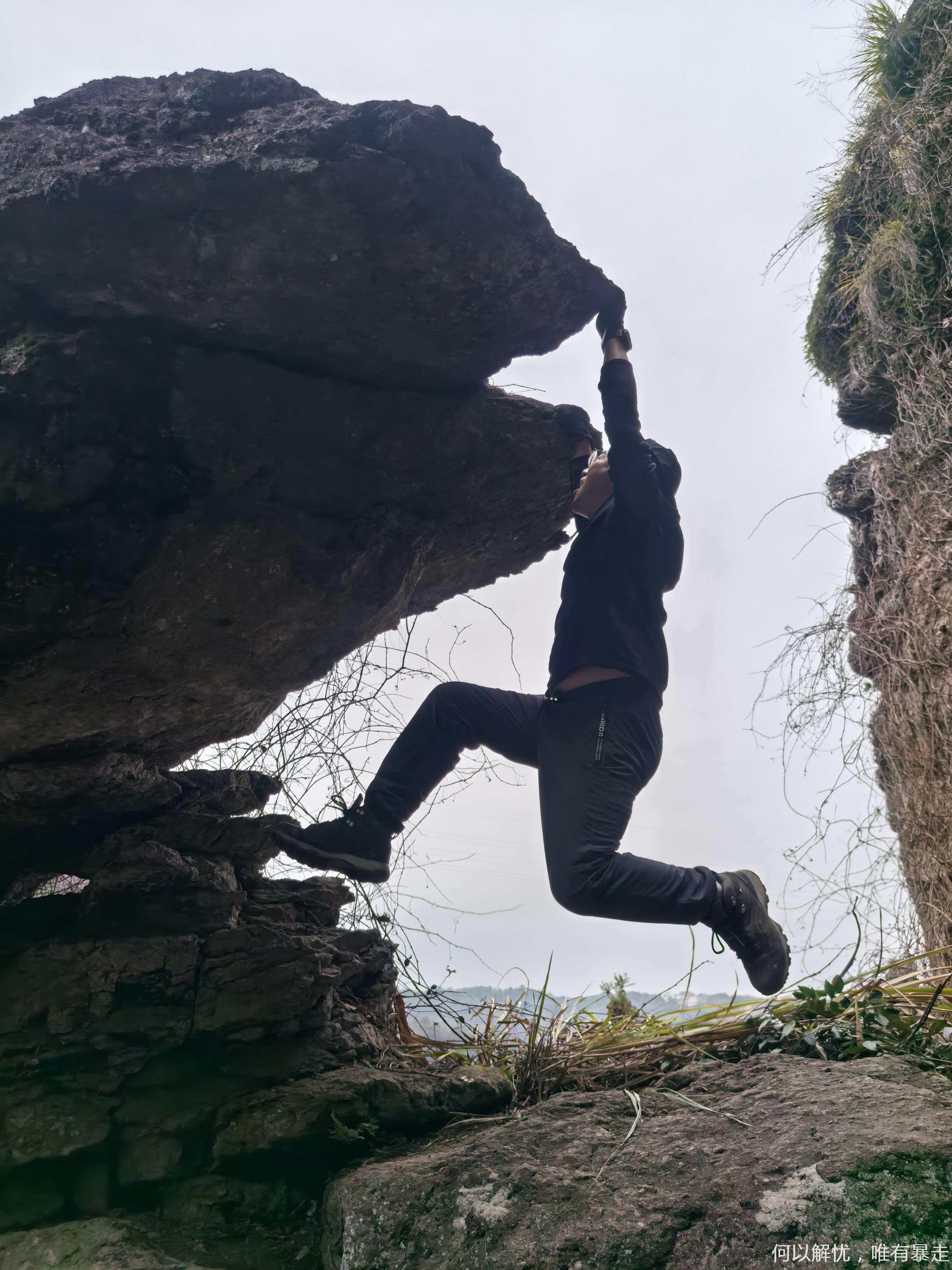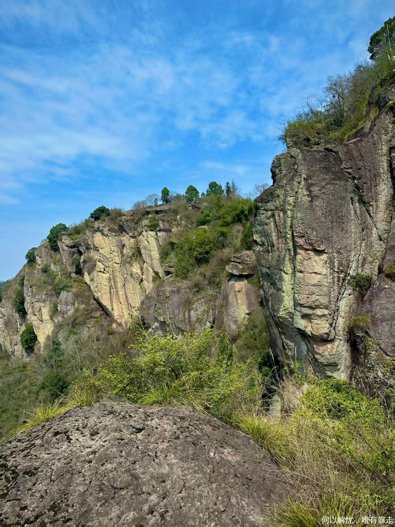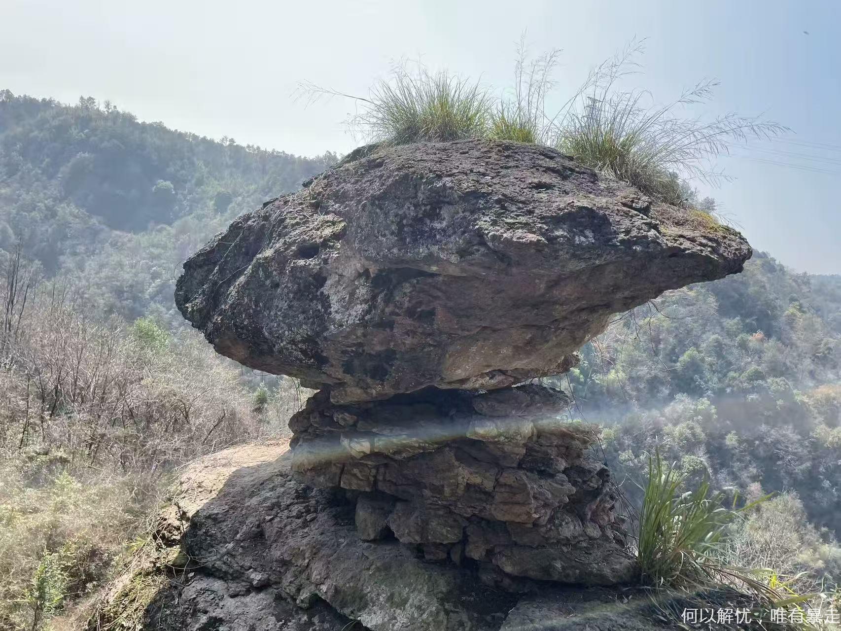 一路边摄边走。马上到达绳子攀越的鹰嘴岩,大概2小时我们到达金枪岩,开始路餐,大家可以把自己带的东西拿出来一起分享,金枪岩风景不错,我们边吃美食边赏美景。吃过午饭继续前行,朝着今天最后的蘑菇岩进军.