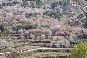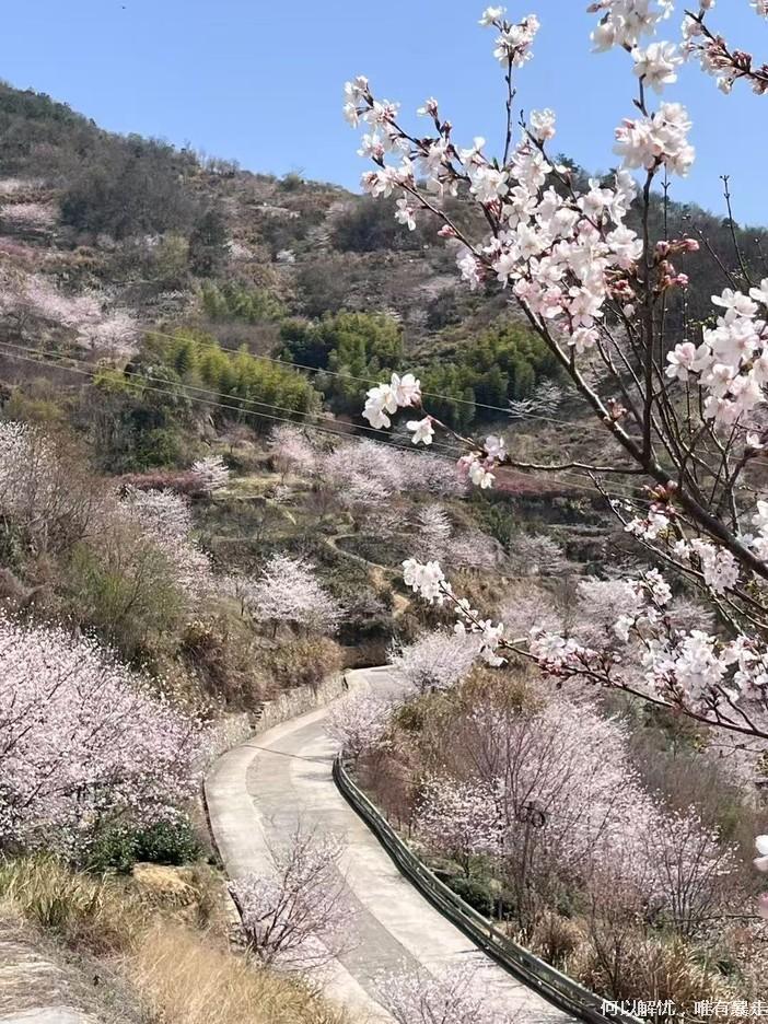 亮点2:染井吉野樱花:浙江规模最大的染井吉野樱花盛开之地,千亩的樱花绽放,漫山遍野都是樱花,有山有溪有庙,属于第一次看樱必到之地!