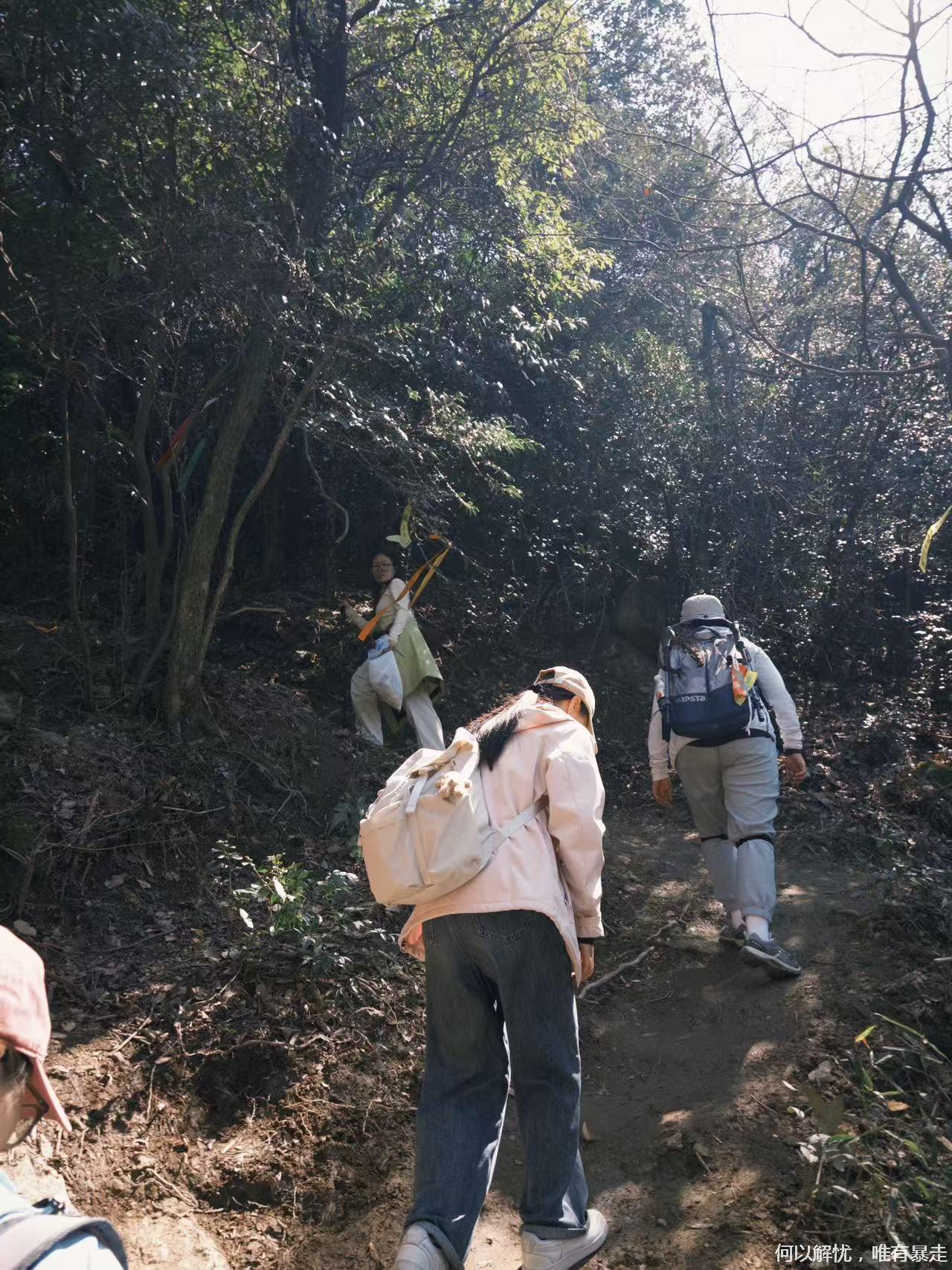 10:30-11:00左右到达诸暨登山口村庄,大家热身后稍作整理,开始今天的徒步,沿着石阶小道蜿蜒而上,与山涧溪流、瀑布为伴,走过像童话故事一样美的千年香榧林、木头小桥,进入野路。