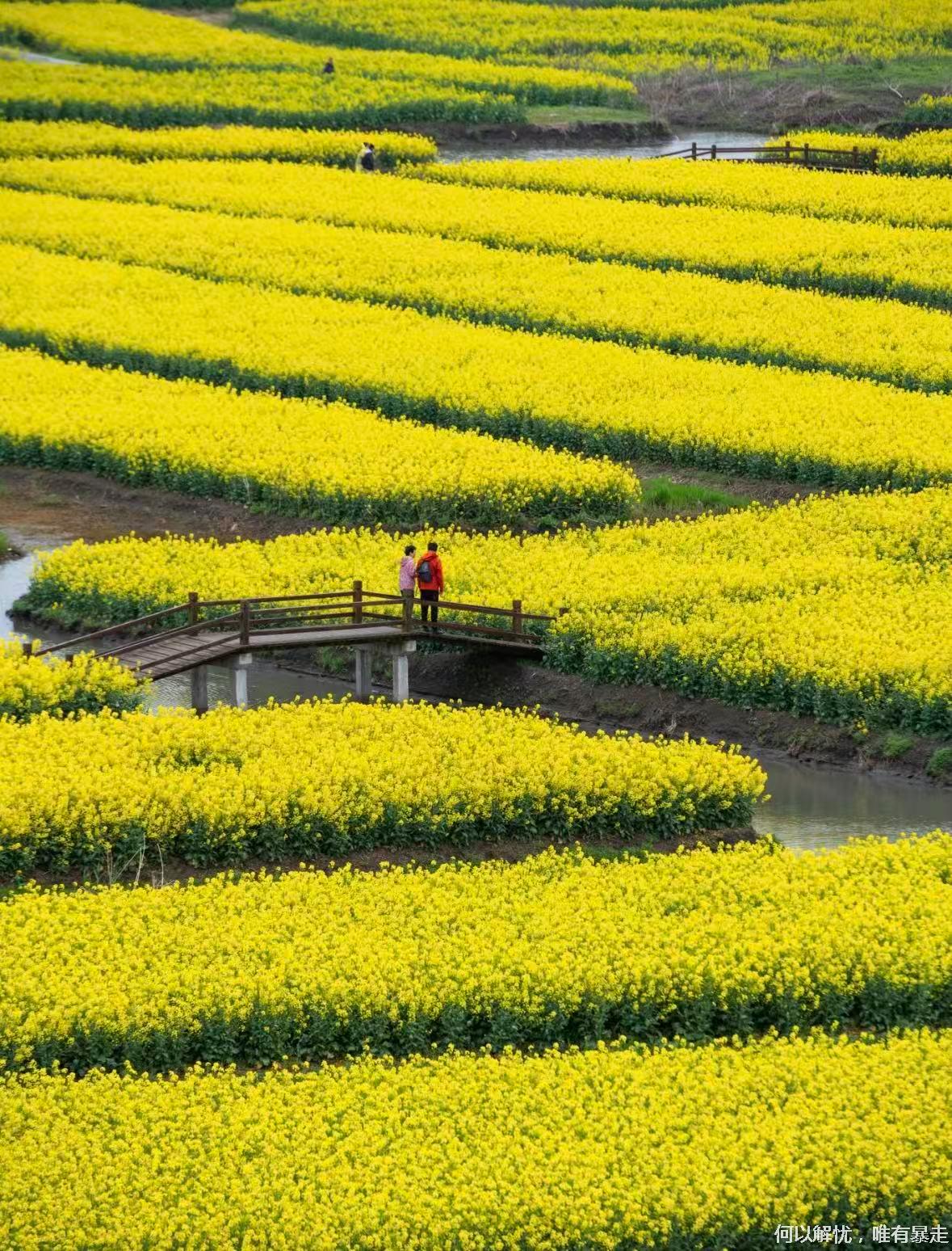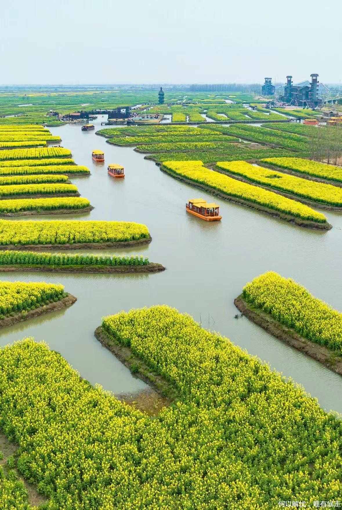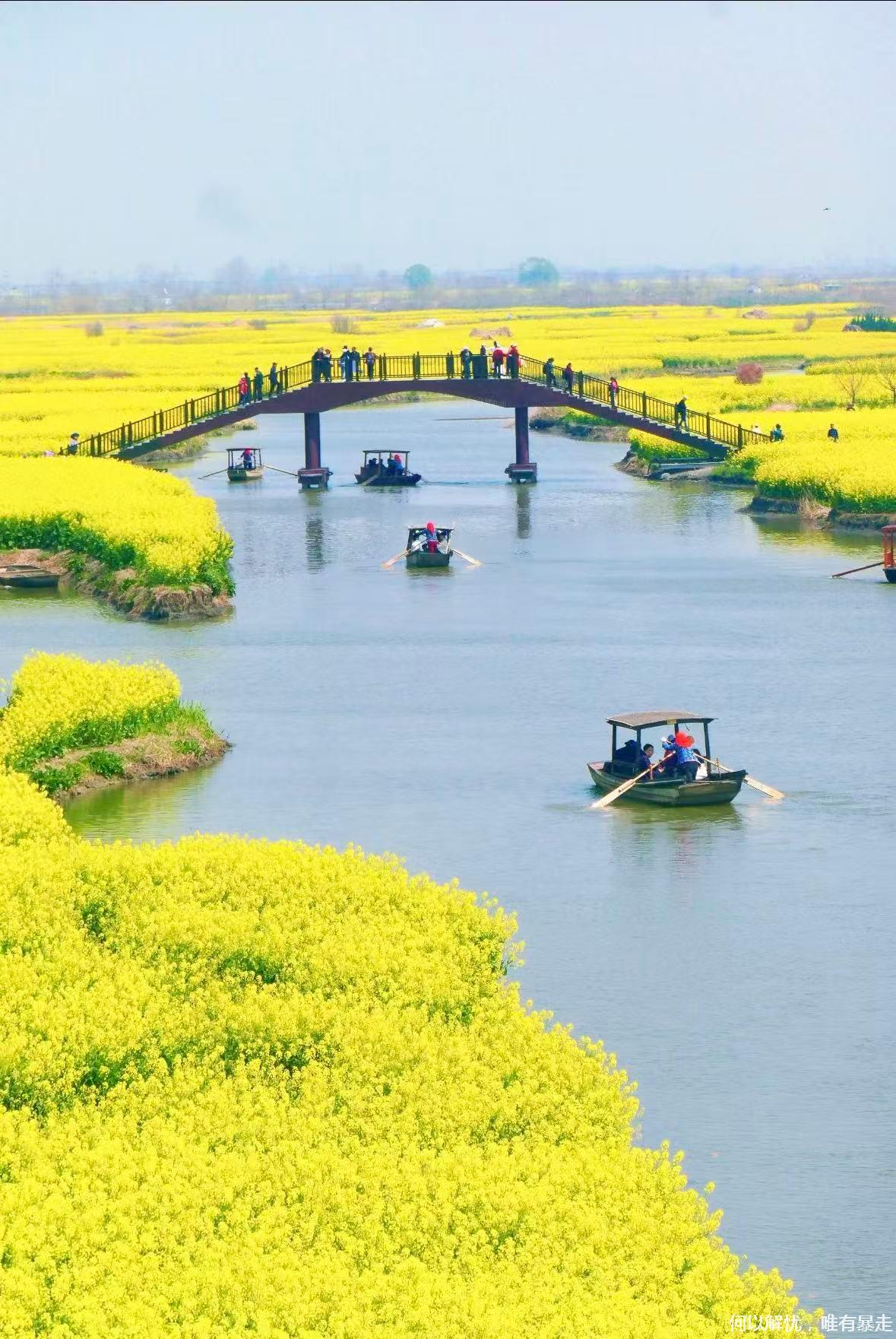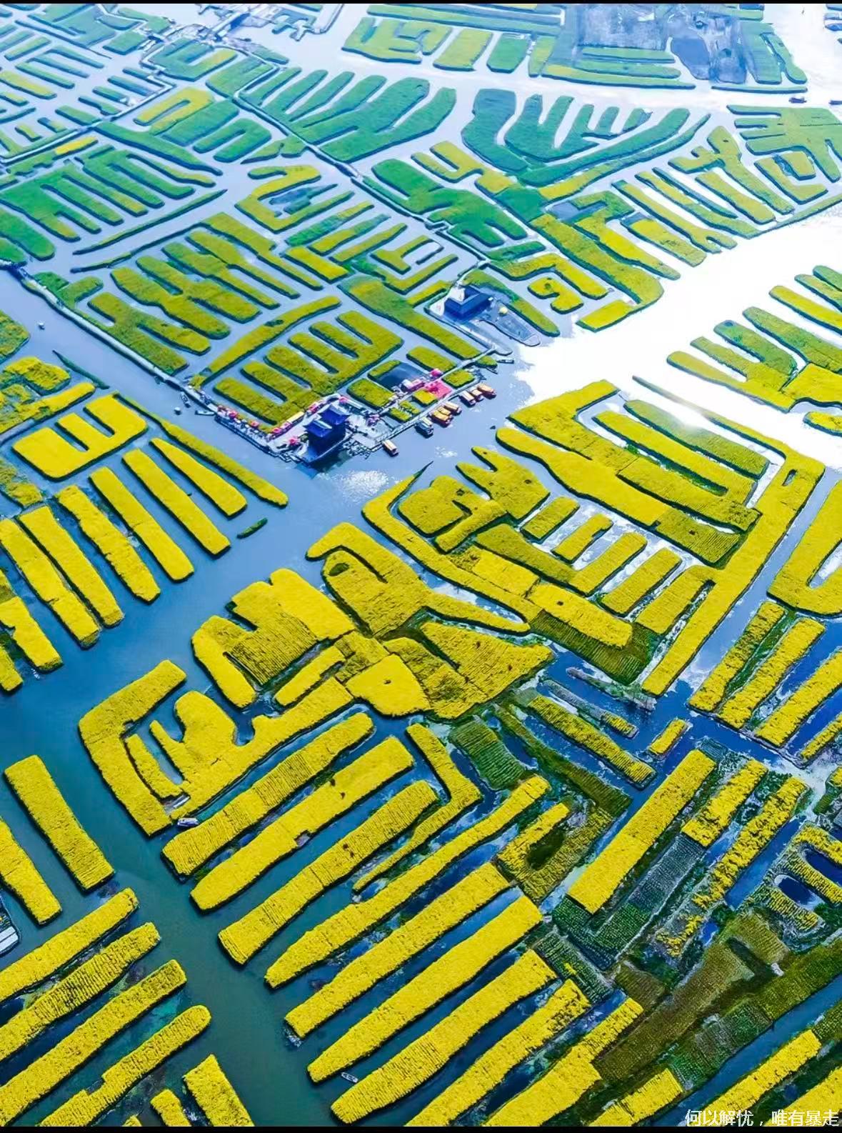09:00我们到达 千垛油菜花,上千个垛田上金黄的油菜花竞相绽放,与蓝天、碧水相互映衬,形成“河有万湾多碧水,田无一垛不黄花”的绝美画卷。可自费坐乌篷船/画舫穿行垛田水道;登观景台俯瞰金色几何田园