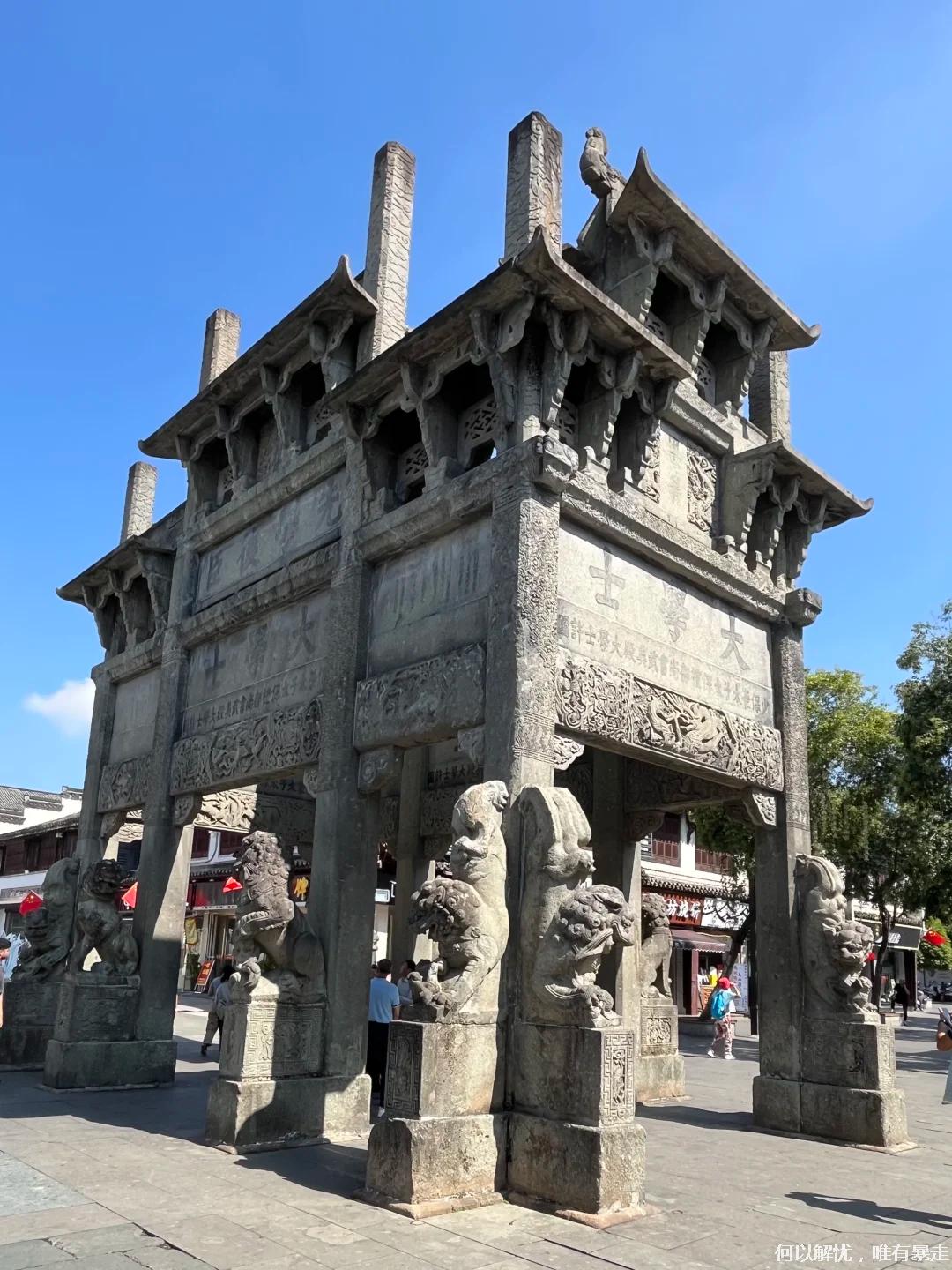 12:30-16:00 左右到达徽州古城,穿过古城门,徽州古城的烟火气一下子就扑了过来。石板路被晨光晒得暖乎乎的,两旁的老铺子敞着,卖烧饼的香味飘得老远,我们慢悠悠往里逛,满眼都是白墙黛瓦的老房子。
