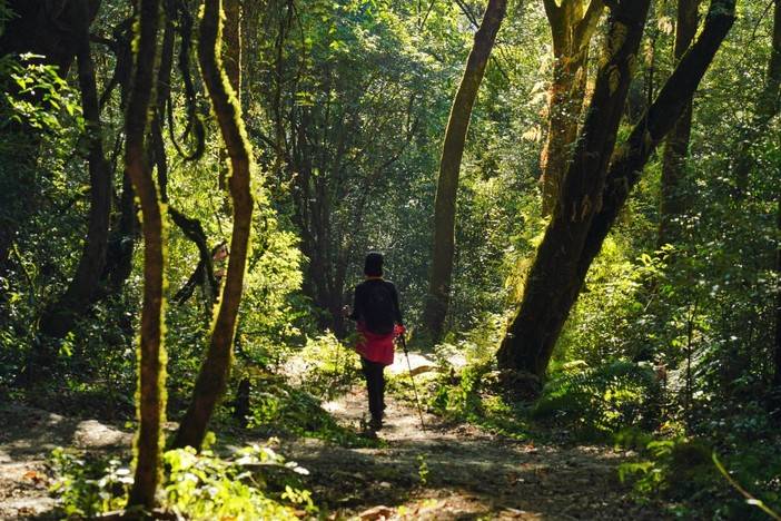 1、今天原始森林徒步约7KM,爬升约100米,下降约100米,徒步时长约3H;