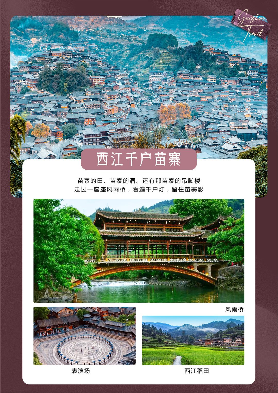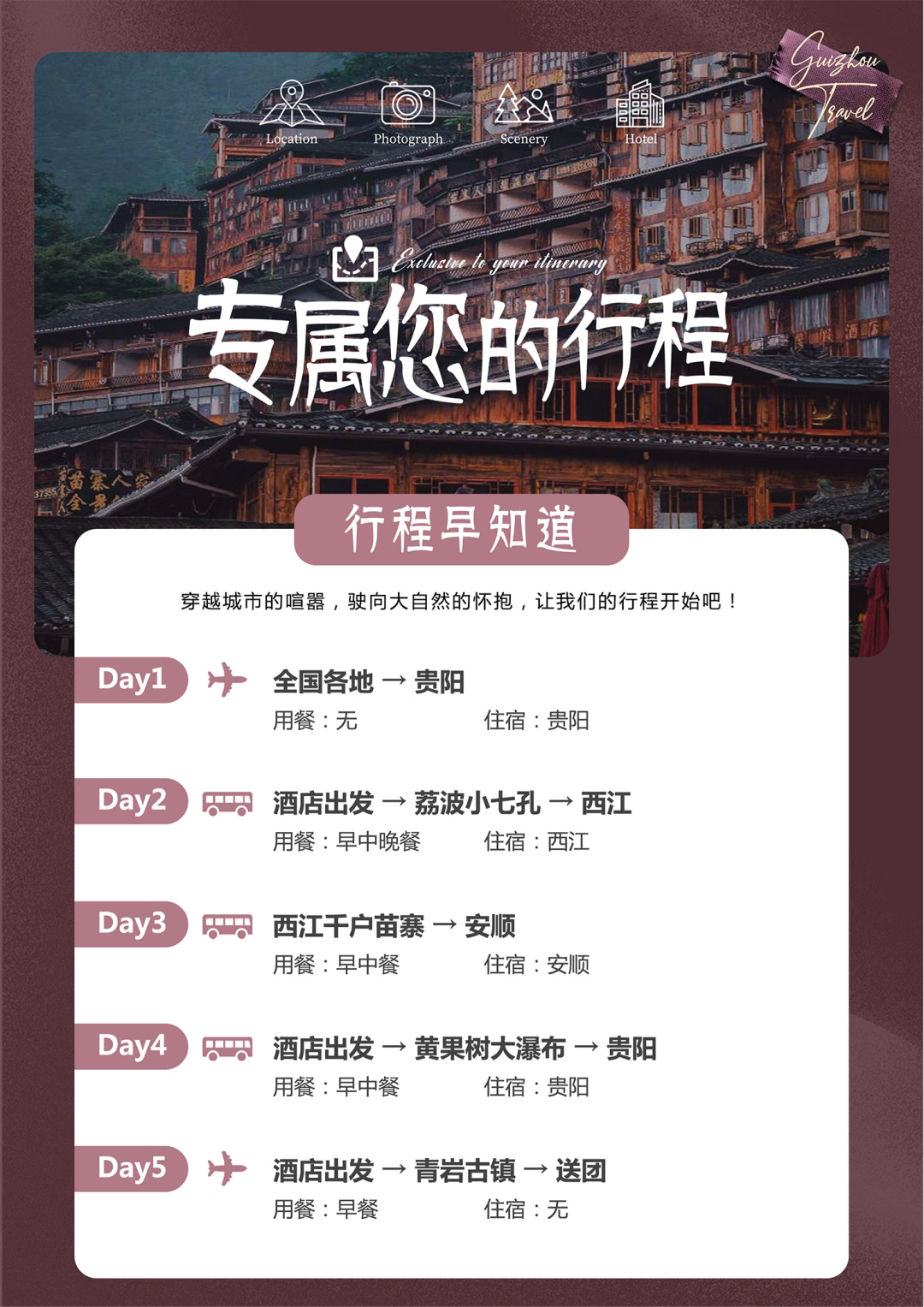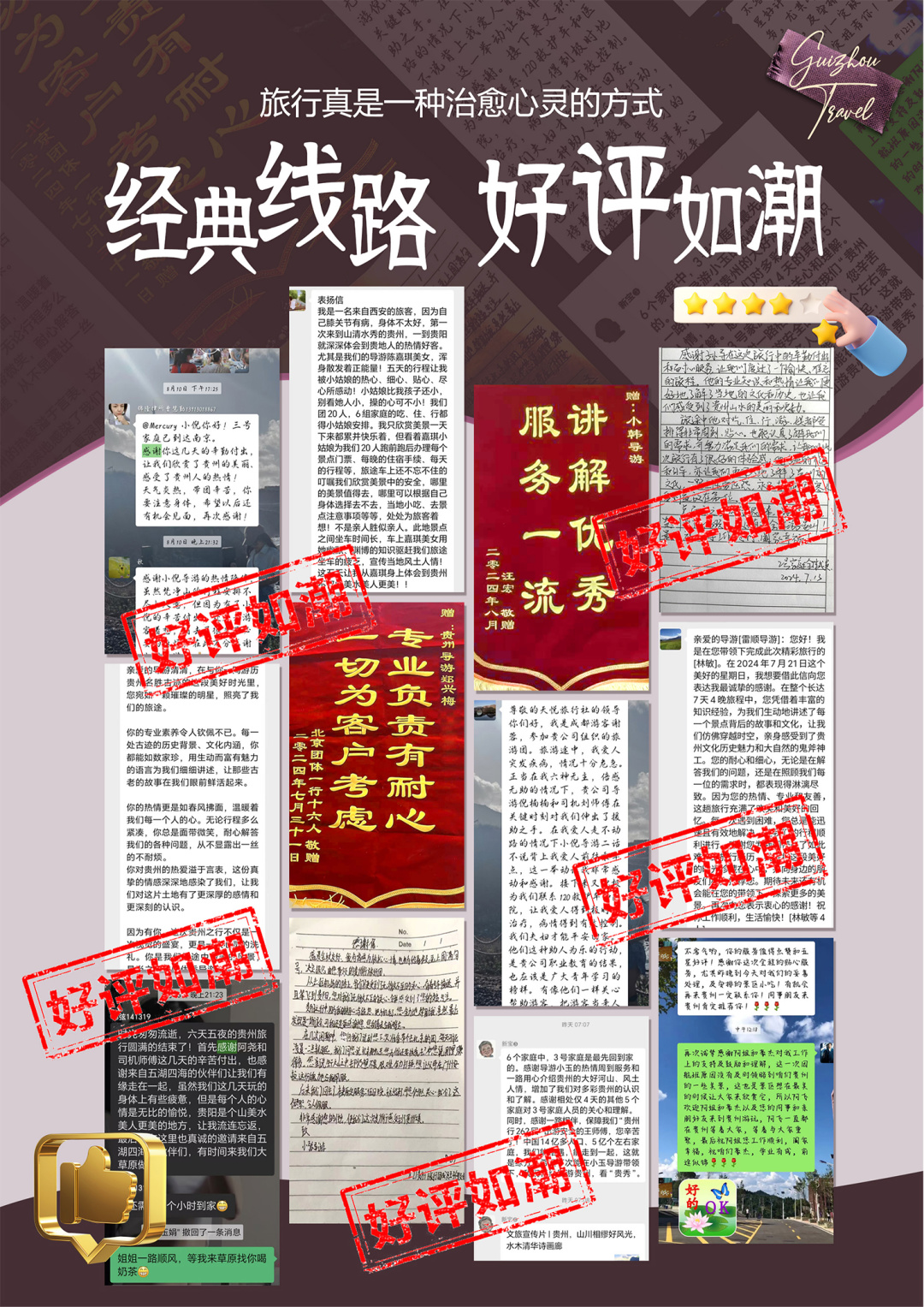 10. 贵州地处云贵高原地区,山路较多,请穿轻便、柔软休闲鞋子;贵州素有天无三日晴之说,天气多雨,请自备雨伞;少数民族寄居地,请遵循当地风俗。