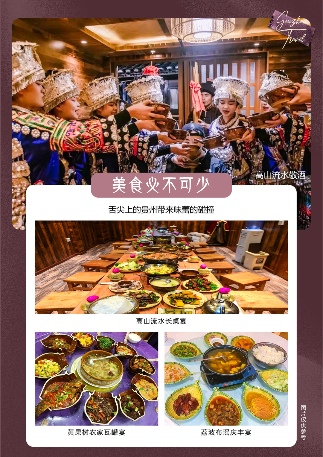 3. 用餐:行程中团队标准用餐(人数不足10人,则菜品数量相应减少),含4早4正餐,30元/人/餐的标准。(当地特色美食,地道黔味体验;行程中备注不含用餐敬请自理,如因自身原因放弃用餐,则餐费不退)