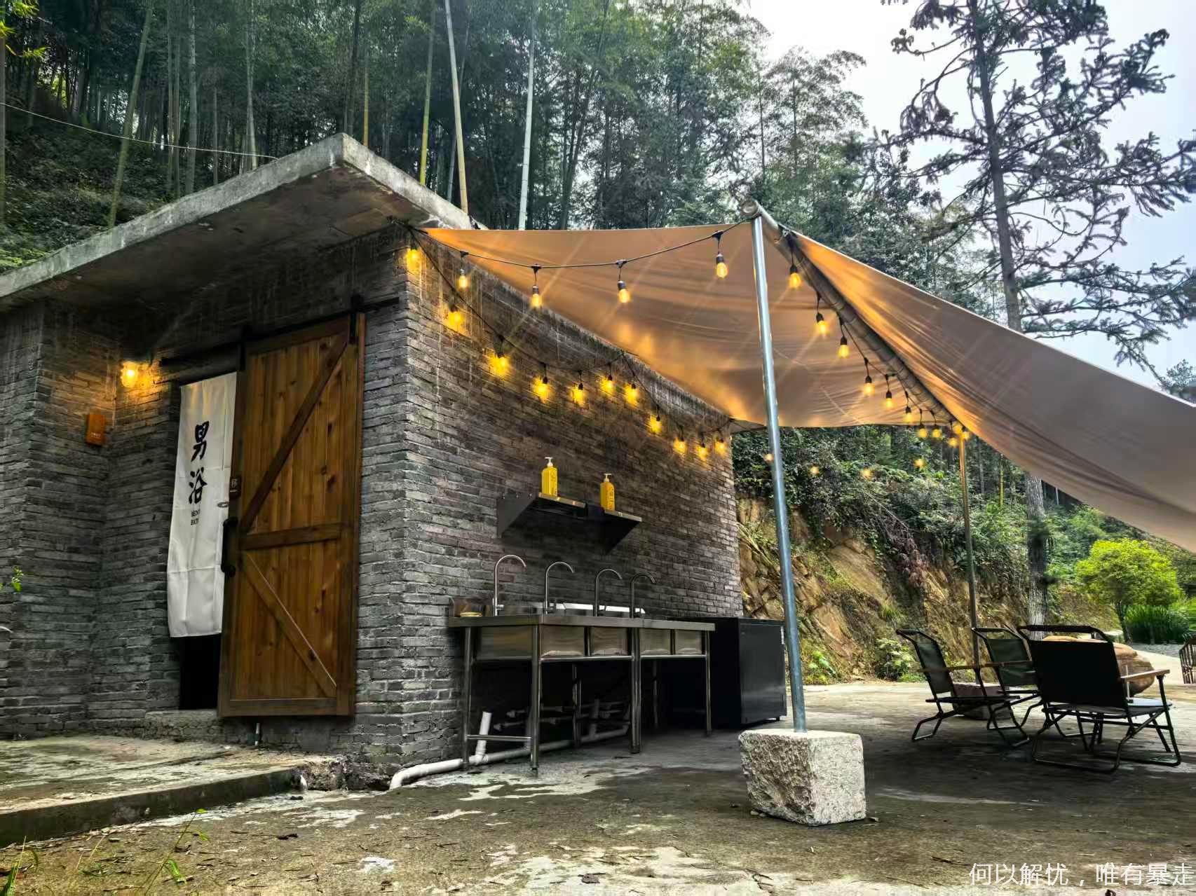 营地卫浴设施齐全:有淋浴间干湿分离,热水很稳定,洗洁精,沐浴露,洗发水都有(自备牙刷毛巾)