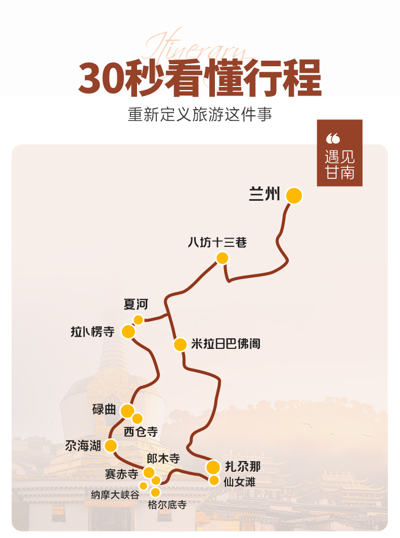 2、行程结束当天15:00左右抵达兰州西站,大家可以依据自己的时间,自行选择继续游玩或是启程回家。火车建议购买17:00以后的车次,高铁建议购买16:00以后的车次,飞机建议购买18:00以后的航班。兰州火车站距离兰州中川机场约68公里,车程约1.5小时。兰州站距离机场大巴客运中心站徒步300米,到达机场71公里,用时1小时25分钟左右,大家根据自己的航班车次选择返程票。