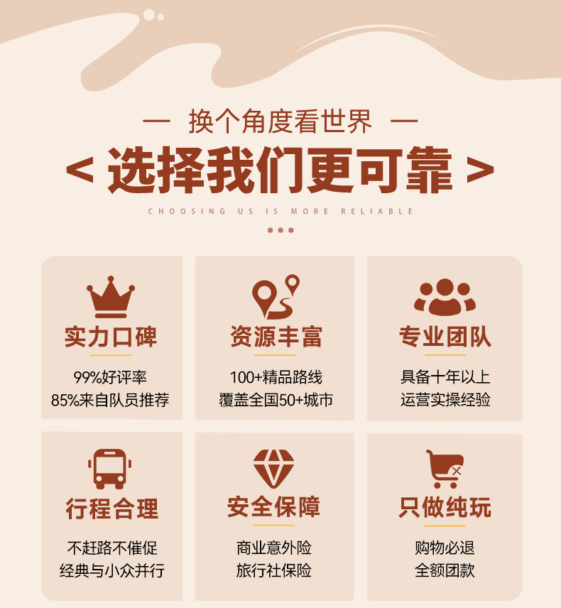 注:行程内时间都为计划时间,如遇暴雨、堵车等情况,具体行程由领队安排。