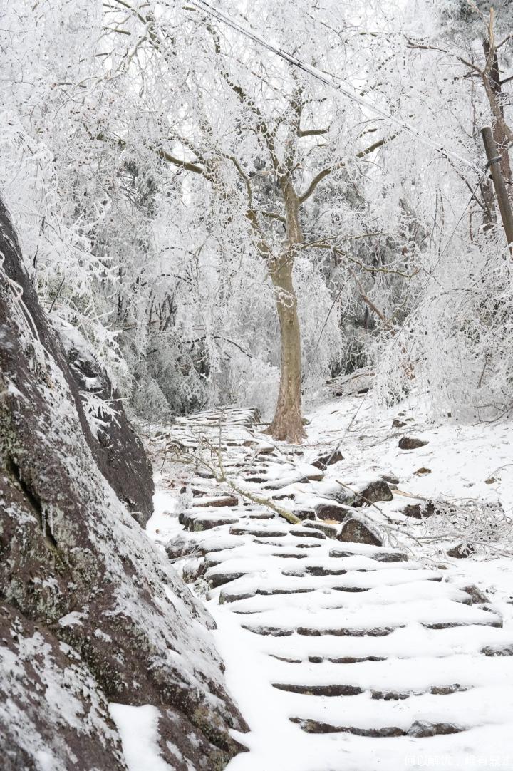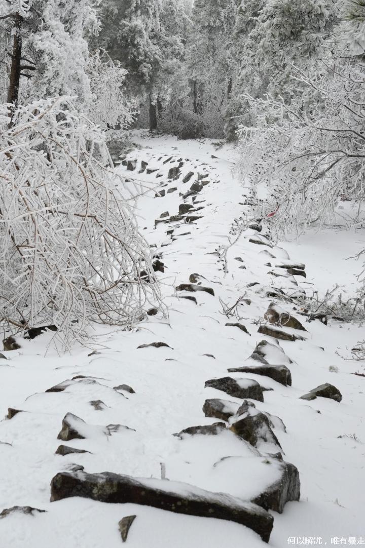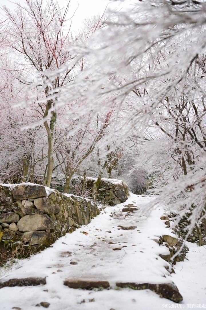 亮点2:每年12月至次年2月,蜘蛛岭化身为冰雪童话世界。玉树雾凇、云海漫涌,松枝挂雪如银发轻摇。踏上冰雪覆盖的古道,仿佛跌入冬日梦境,自由穿行于北国般的奇幻仙境。