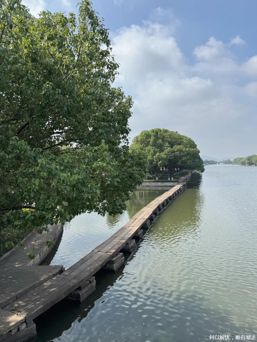 本次穿越路线全程步行约2.5公里,可饱览古纤道全景。其中约1公里为最精华的湖面路段。