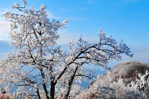 在冬季,冰雪覆盖的鸬鸟山就像童话世界一样 ,
