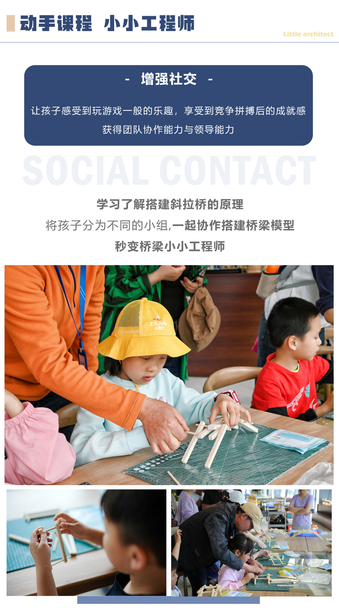 平塘特大桥为249.5m+2×550m+249.5m的叠合梁斜拉桥。其主塔采用钻石形索塔,整体呈花瓶形状,主塔塔高为320m。桥位地势陡峭、地势高差大、场地狭窄,垂直气候特征明显素有“天空之桥”的称号,我们将在【天空之桥博物馆】中,科普了解贵州的桥梁艺术,并以小组为单位,亲手搭建【桥梁模型】提高团队协作能力,化身小小工程师。