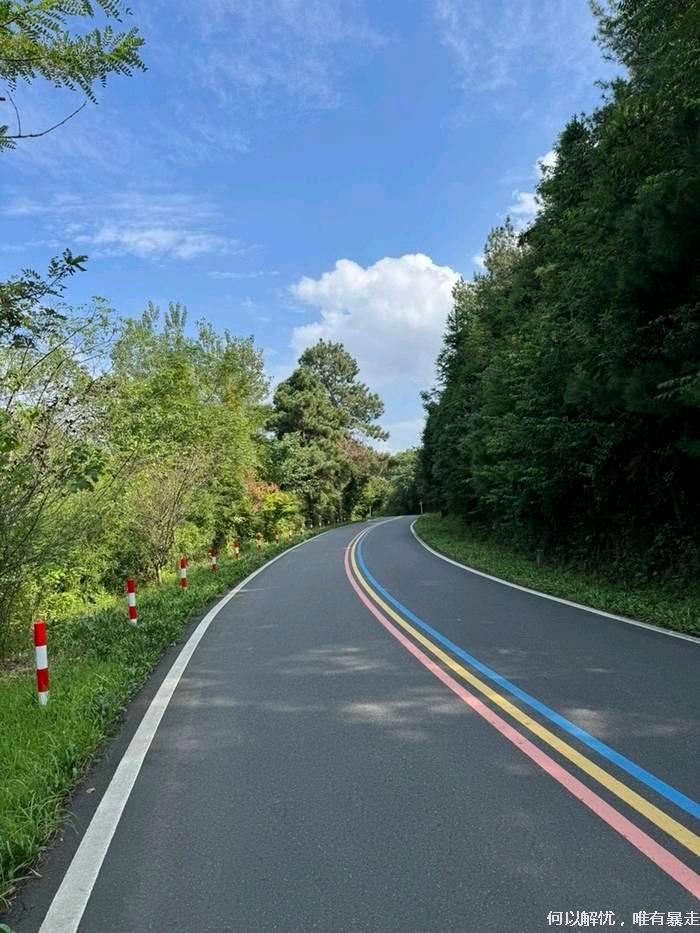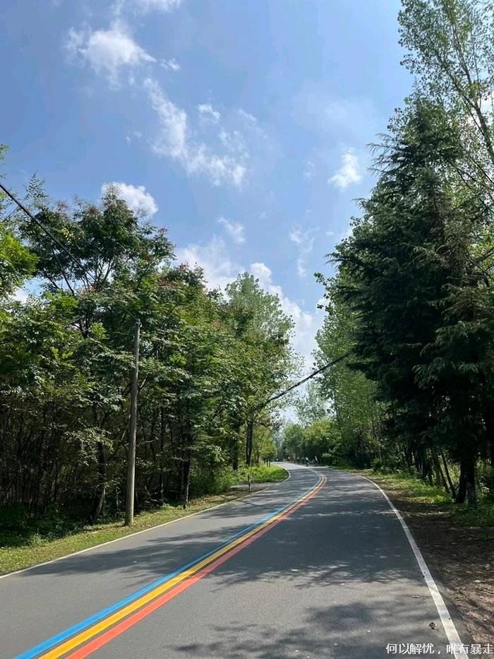亮点2:溧阳一号公路是一条网红彩虹公路,以中央橙黄蓝三色线为标志,如彩带铺展于乡野。近80公里的骑行线路串联起多个核心景区与特色乡镇,集自然风光、人文底蕴与乡村风貌于一体。
