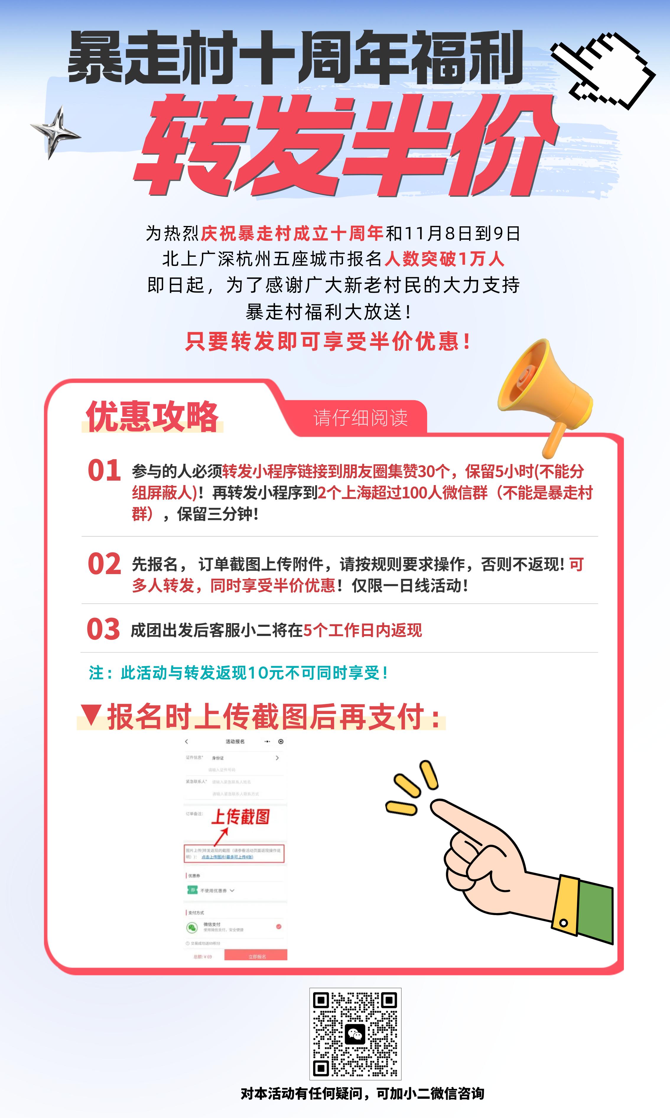 微信搜索【暴走村上海站】公众号关注或添加小程序,