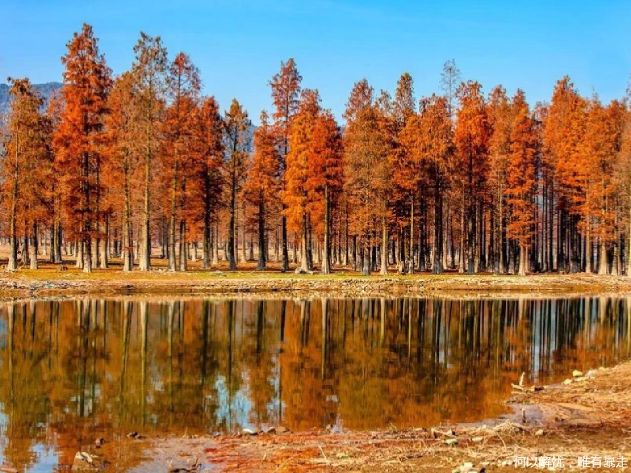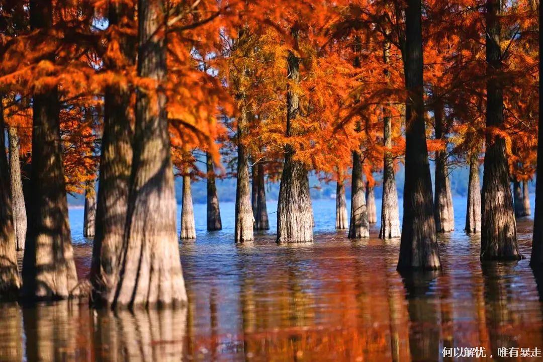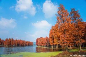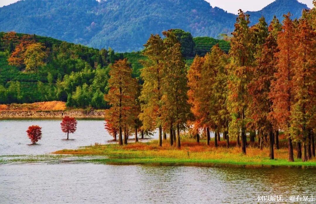 亮点2:四明湖:四明湖被誉为“浙东明珠”,湖畔徒步可赏水上红杉林奇观。秋末冬初红绿交织,林水相映,白鹭翩飞,景色如画。