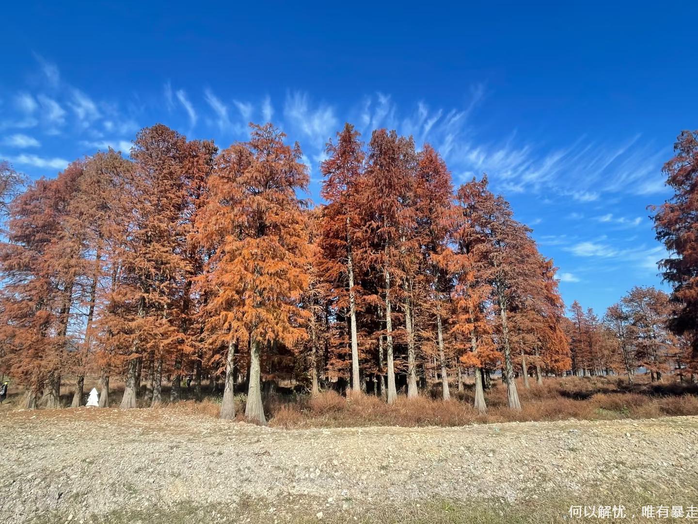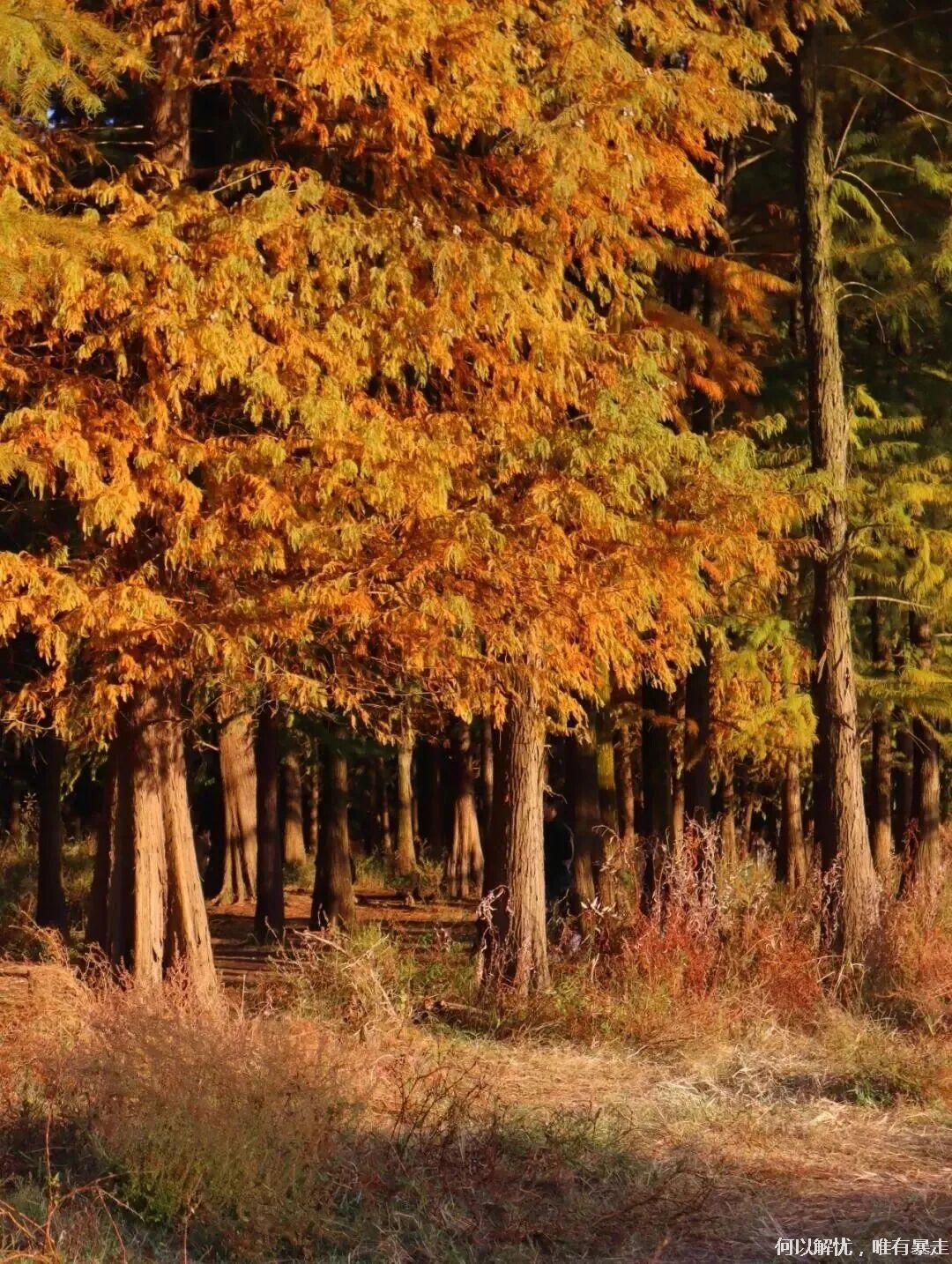 11:00-11:30左右,抵达四明湖,沿河漫步,于廊桥栈道流连。步入水杉林,红叶片片,秋波涟漪,赏秋拍照,在暖阳中尽享江南之秋。
