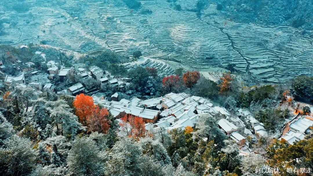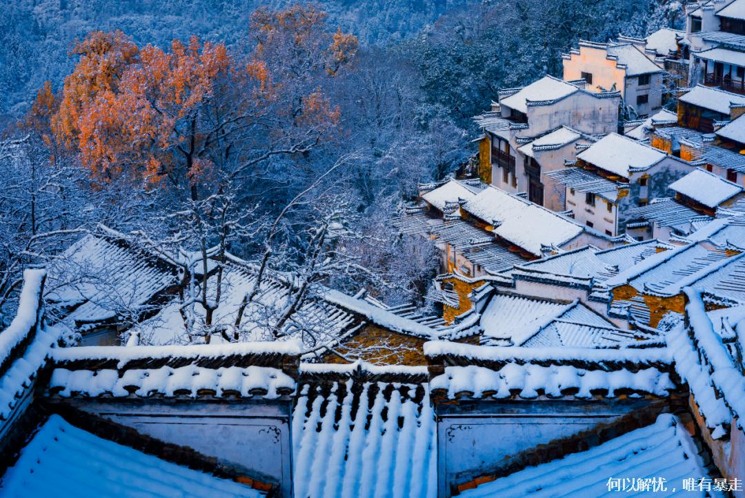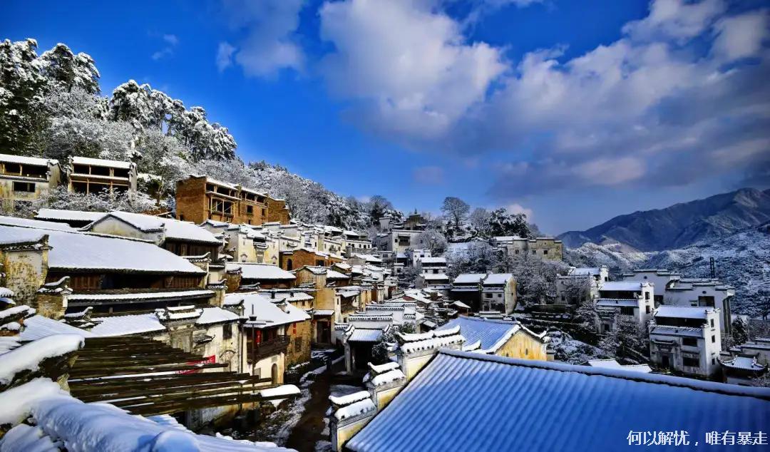 若遇降雪,篁岭的徽派建筑、青石板路、马头墙会被白雪覆盖,宛如一幅水墨画。