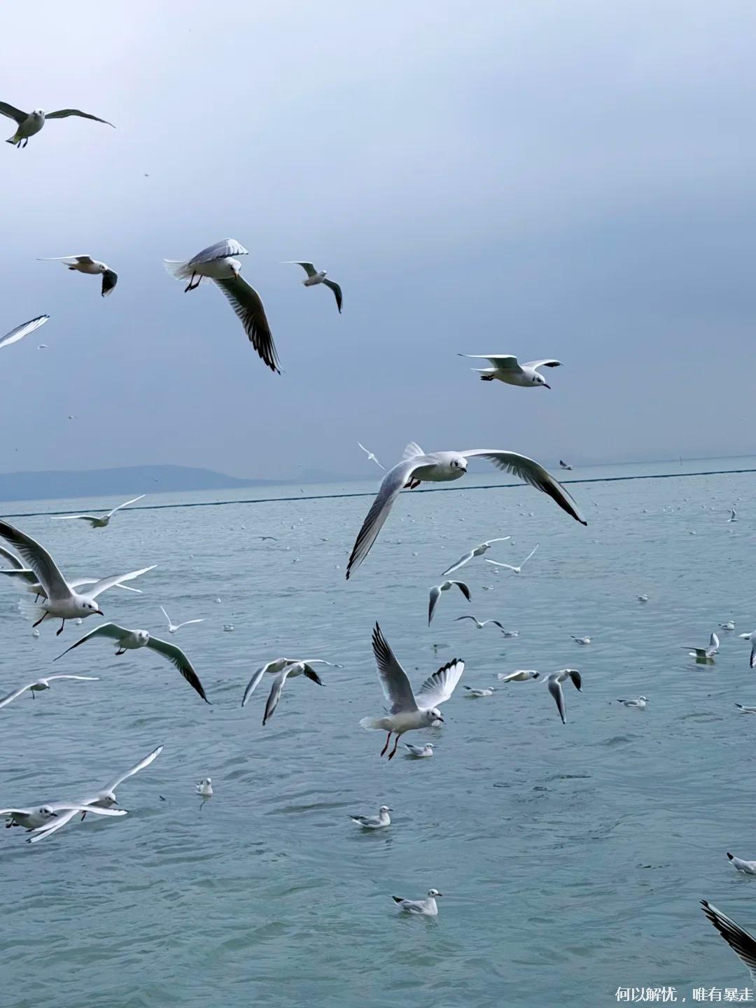 红嘴鸥为冬候鸟,每年11月-3月在此栖息,其活跃度与当日天气密切相关。理想的观赏时间是晴天傍晚(日落约在5点),出行前建议查好天气。如果碰上阴天,胧中的鸥影也十分特别!