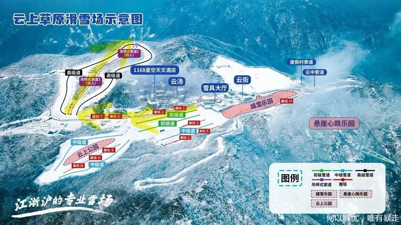 云上草原星空滑雪场总面积达30万平米,可同时容纳20000人滑雪,是华东较大的高山天然雪场,从此告别“下饺子式滑雪”。这里有2条初级道,3条中级道,2条高级道(每条800m)雪道长度和坡度均高于龙之梦、太仓、耀雪等一众室内雪场。
