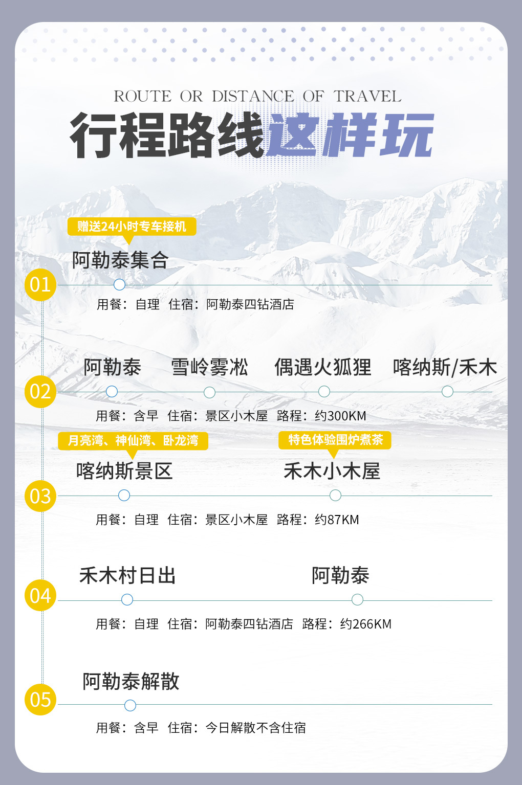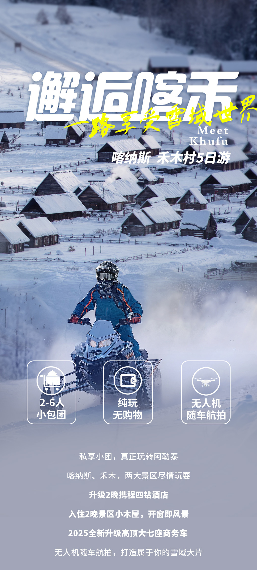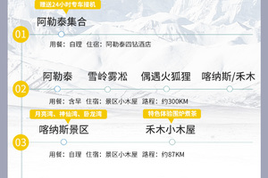 【景点门票】行程中所列景点首道大门票:喀纳斯、禾木冬季联票(喀禾冬季联票无其他优惠)