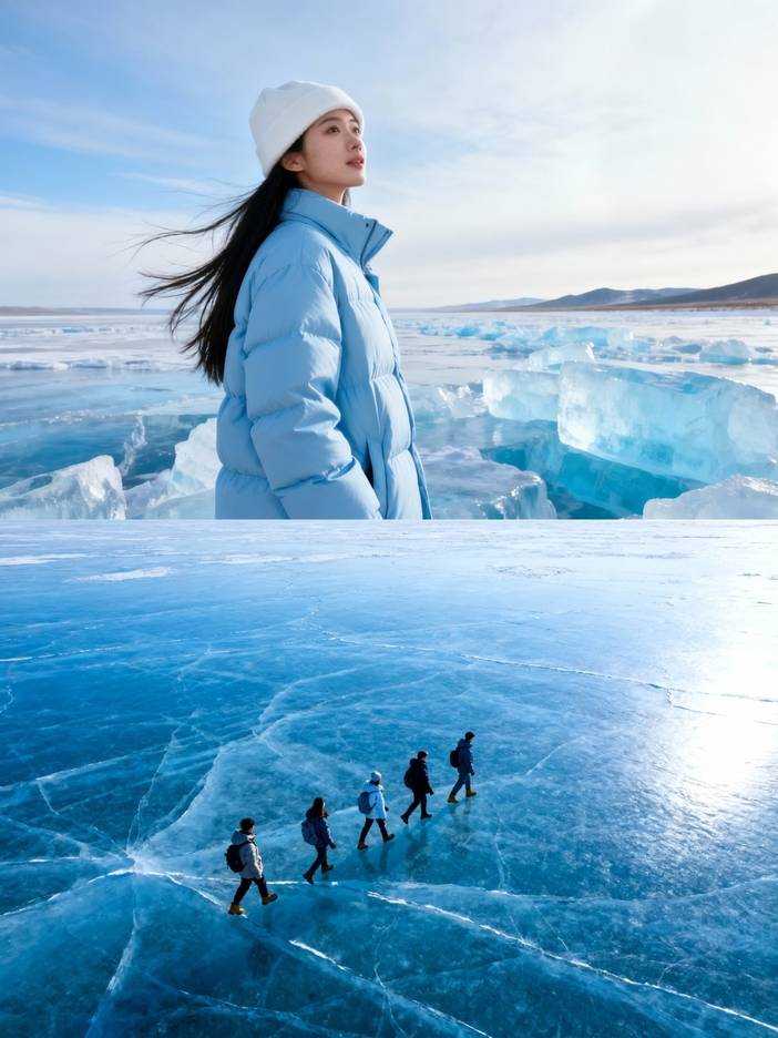 旅程的终章,行至世界的尽头——呼伦湖。中国最大的蓝冰如同上帝的遗落之境展现在眼前。12公里蓝冰徒步,是行走,更是飞行。站在冰面中心,四野空无一物,天地间仿佛只剩下您与苍穹。
