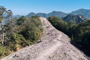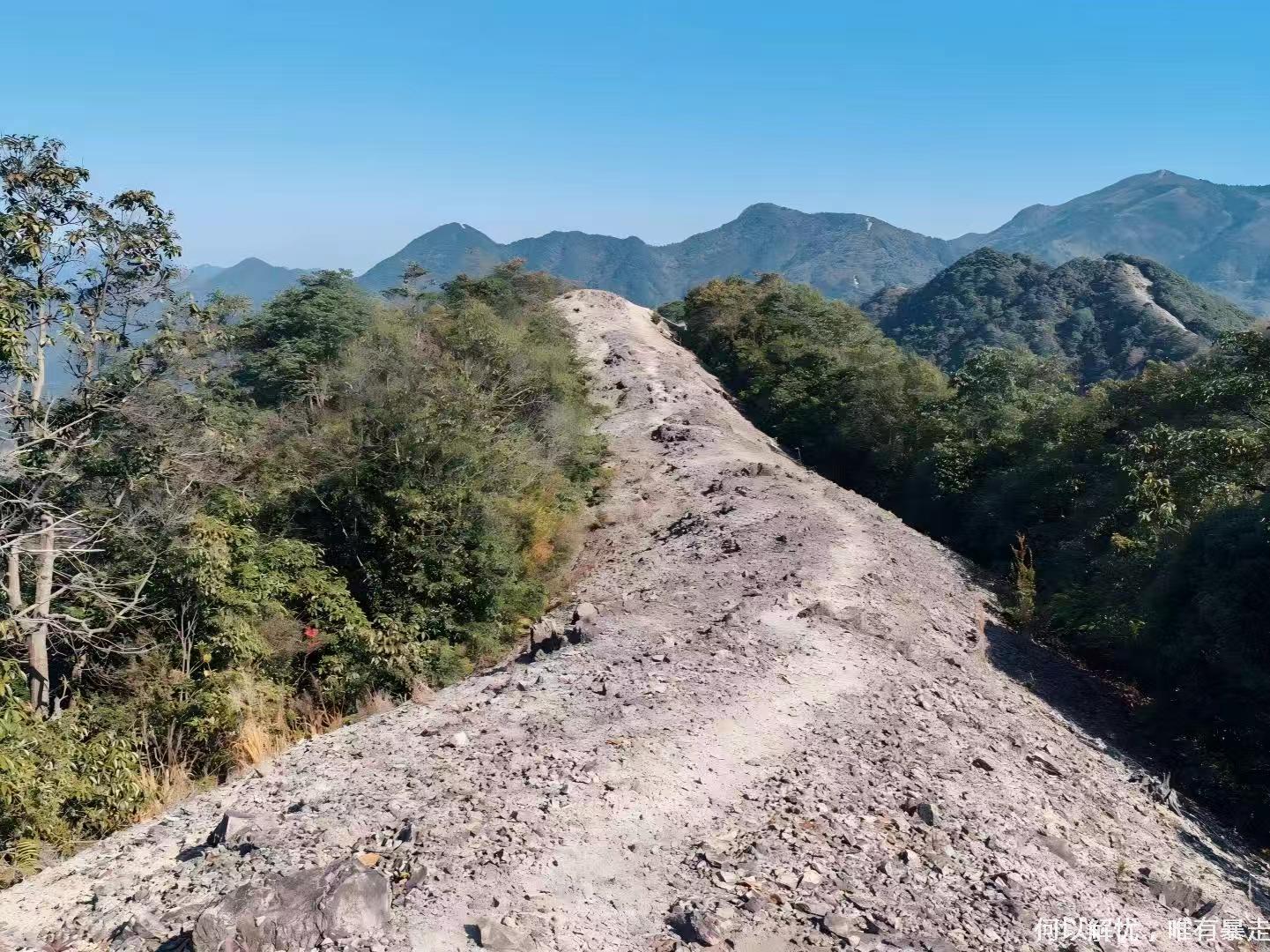 全程位于山脊之上,山脊线蜿蜒起伏,形似长城,因此也被称作“宁海的小长城”。地表以风化岩石、松散土壤(跑马沙)为主,部分区域裸露基岩,形成天然攀岩点。