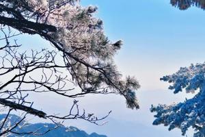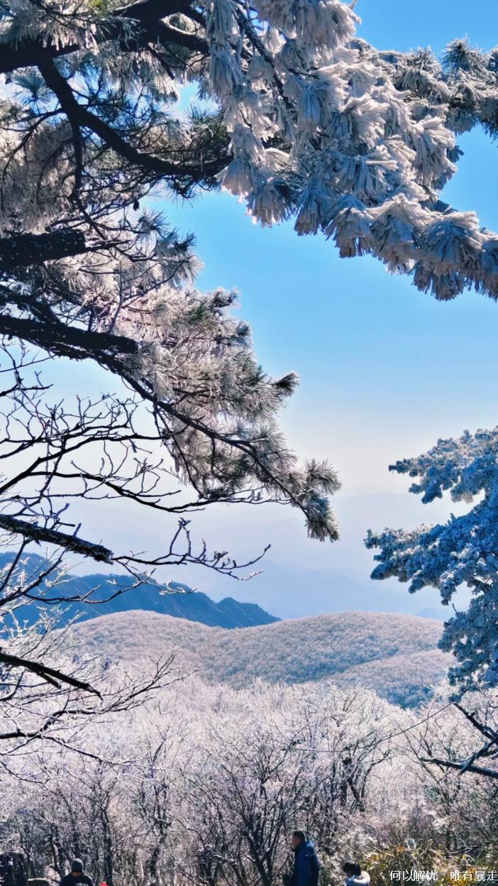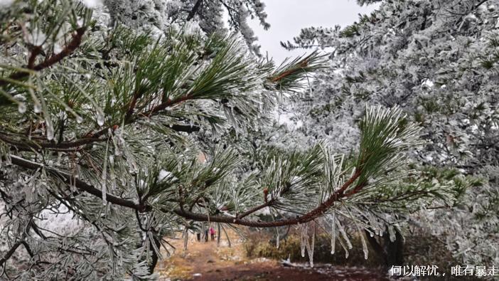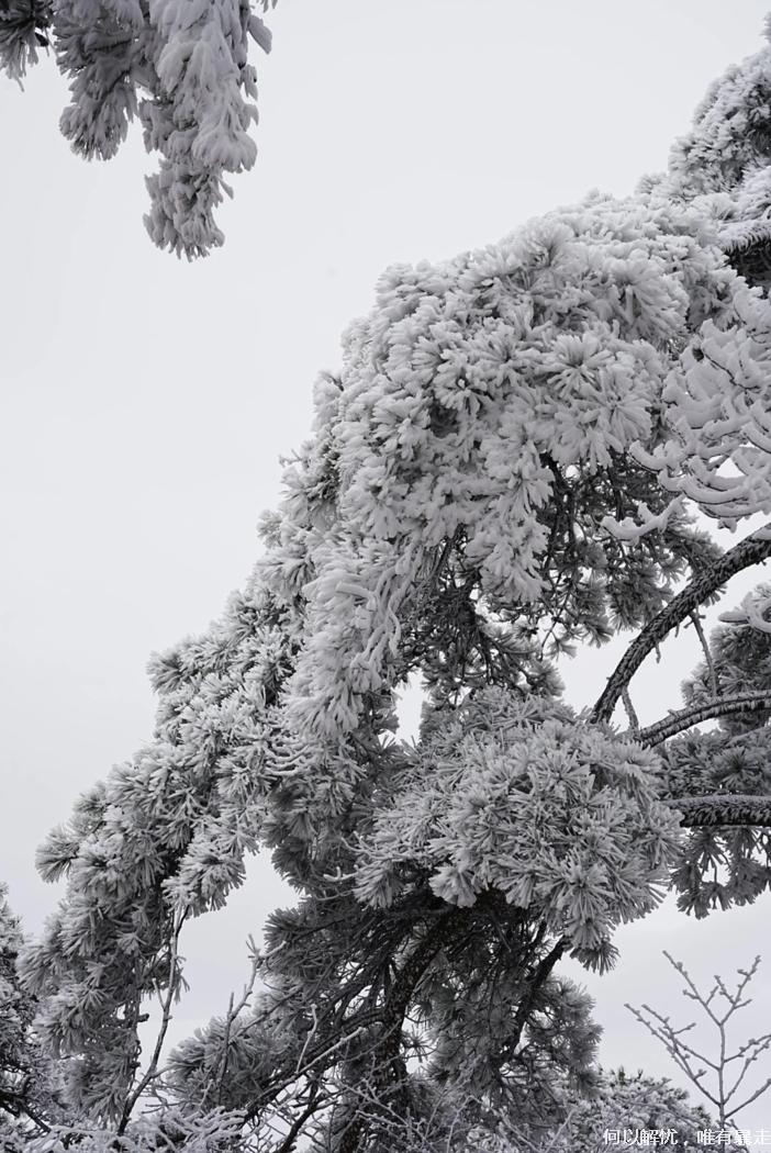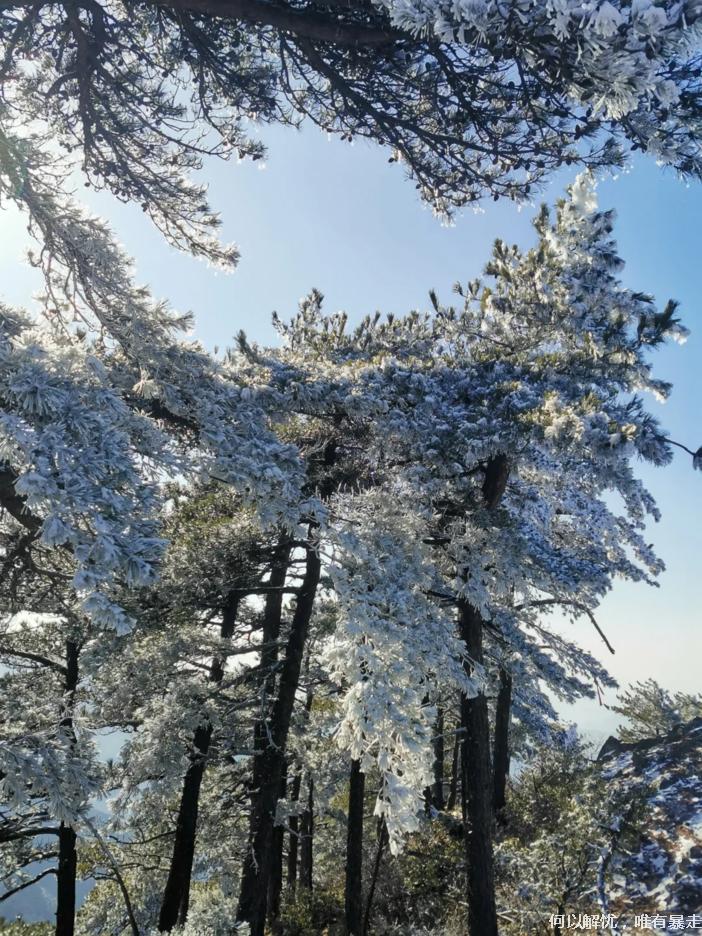 整片的黄山松枝变成琼枝玉树,一片晶莹