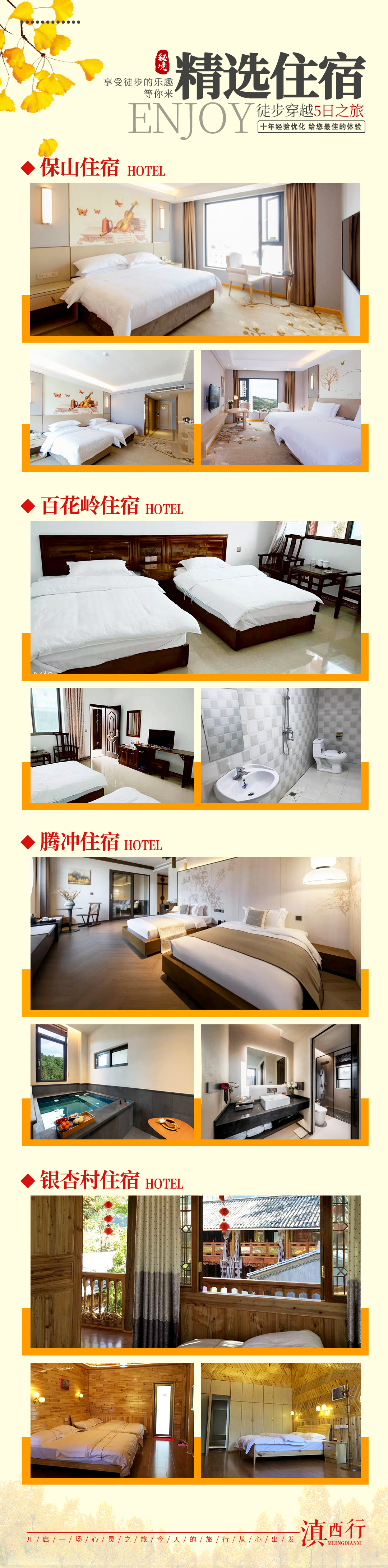 银杏村民宿/腾冲精选酒店1晚,腾冲温泉酒店/精选酒店1晚);