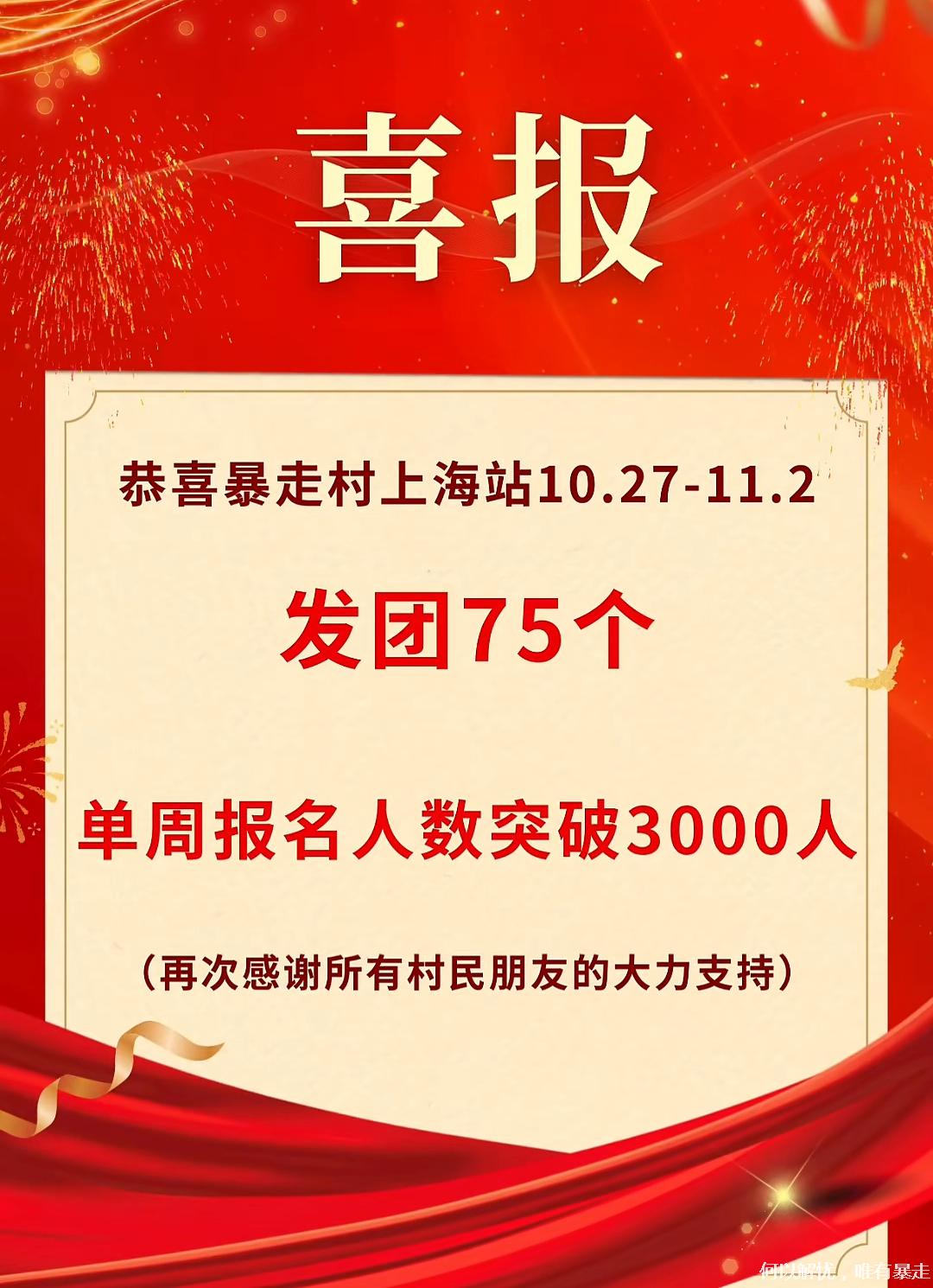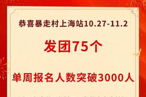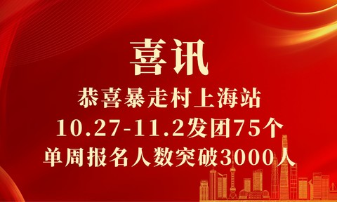 喜报!恭喜暴走村上海站10.27-11.2发团75个,单周报名人数突破3000人 [复制链接]