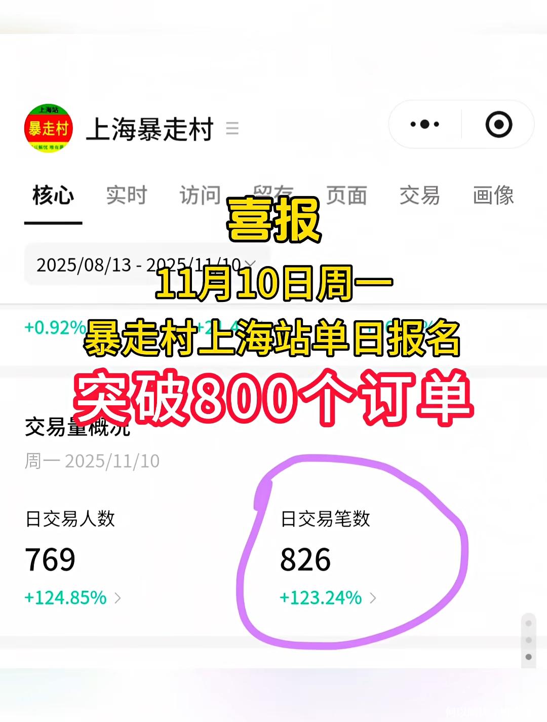 喜报!2025年11月10日周一暴走村上海站单日报名突破800个订单 [复制链接]