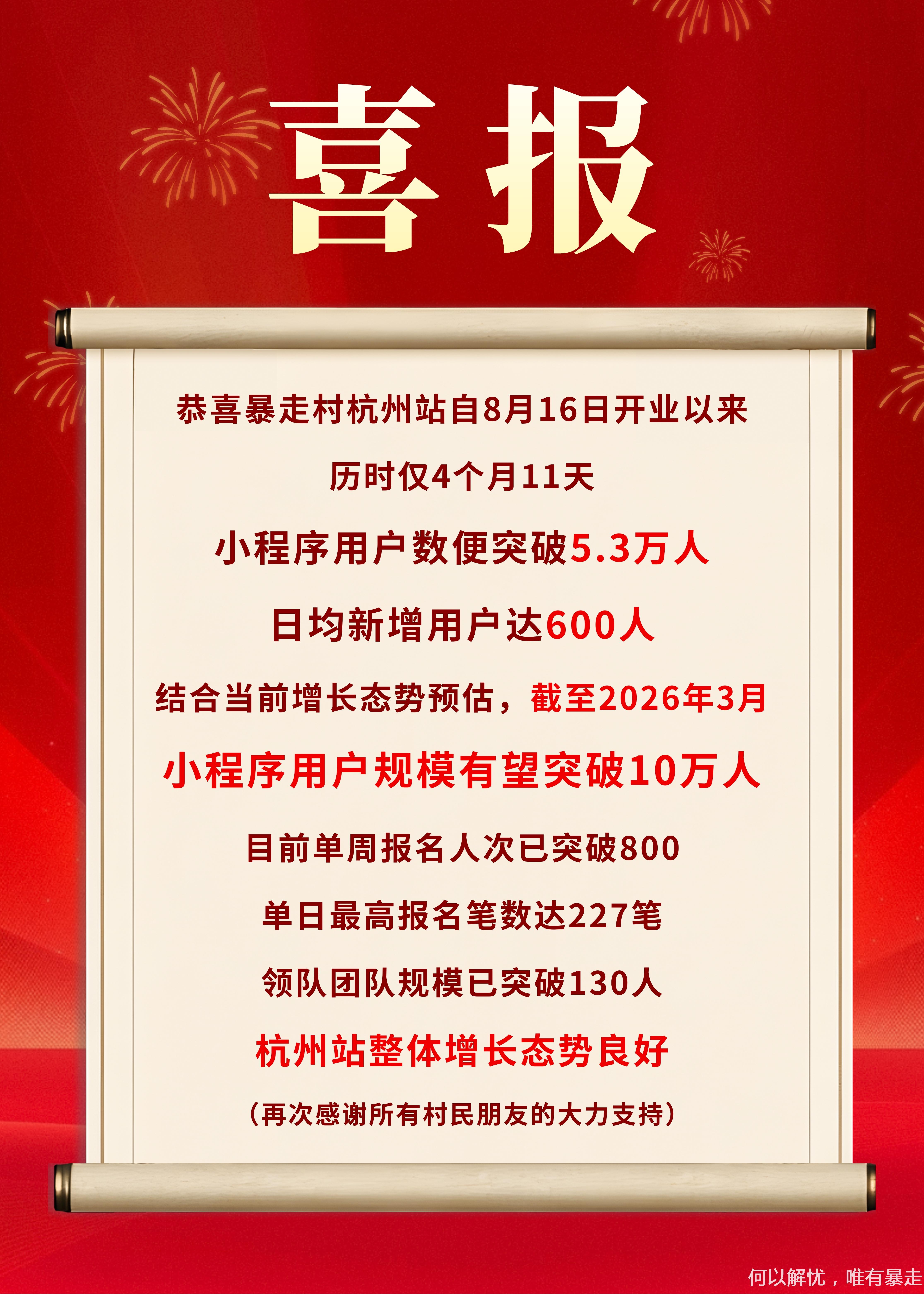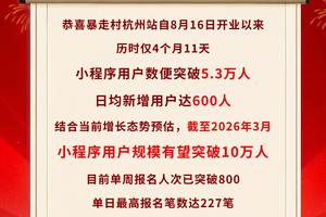 暴走村杭州站喜报!小程序用户数便突破5.3万人 !日均新增用户达600人! [复制链接]