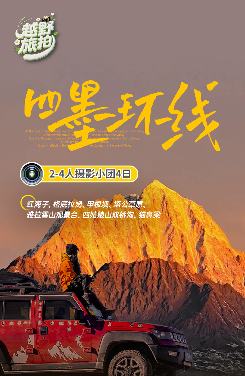 2、如果您座我们的车:全程安排硬派越野车,车型不指定保证安排越野越野车出行,保证每人一正座;