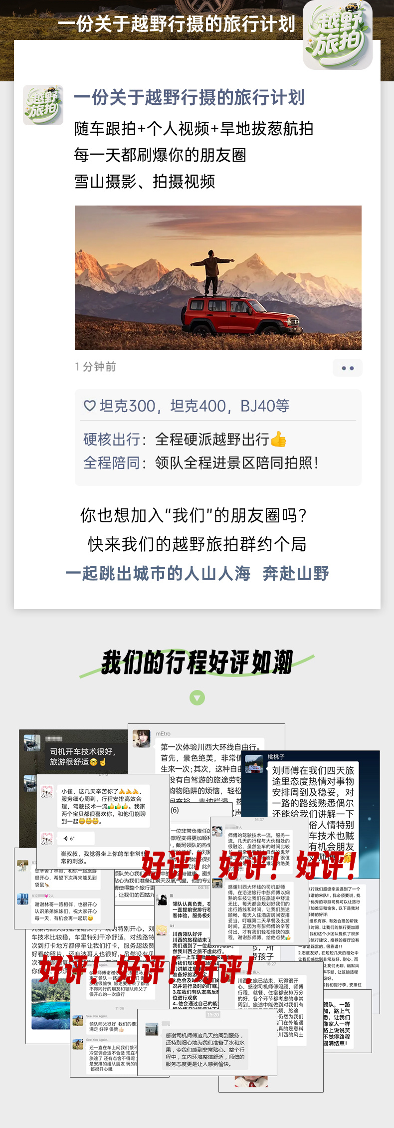 3、为确保领队休息,行程出发前一天,领队正式拉入行程群,此前群内沟通工作由客服完成,拉群即可确认领队的车型、拍摄装备等细节;