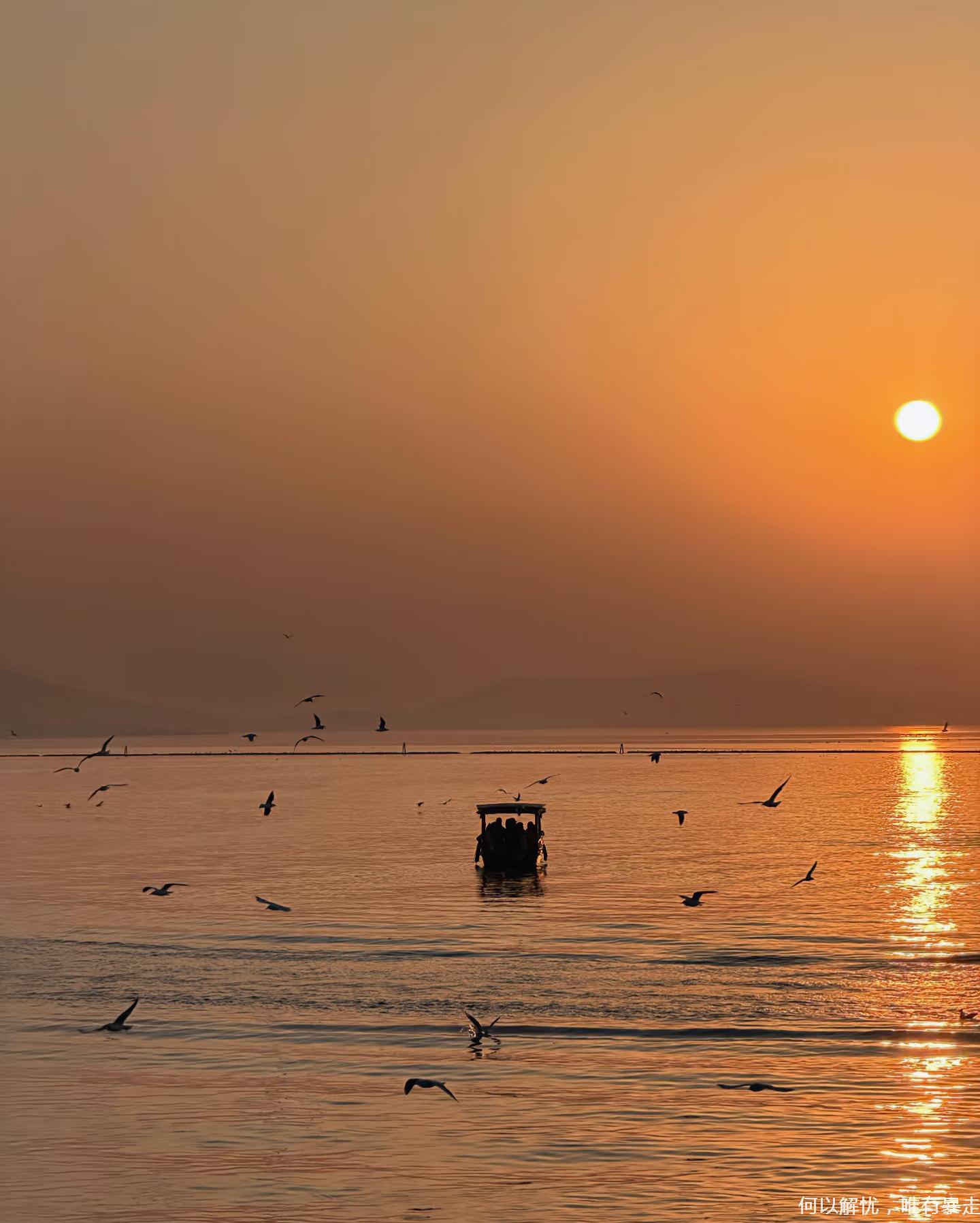 温馨提醒:苏州横山岛的红嘴鸥最佳观赏期为每年12月至次年2月,尤以冬季早晨7:00-9:00及下午14:00-16:00为观鸟最佳时段,落日观赏受天气条件影响较大。如遇阴雨、大雾等恶劣天气,可能无法看到理想日落景观。介意者谨慎报名。