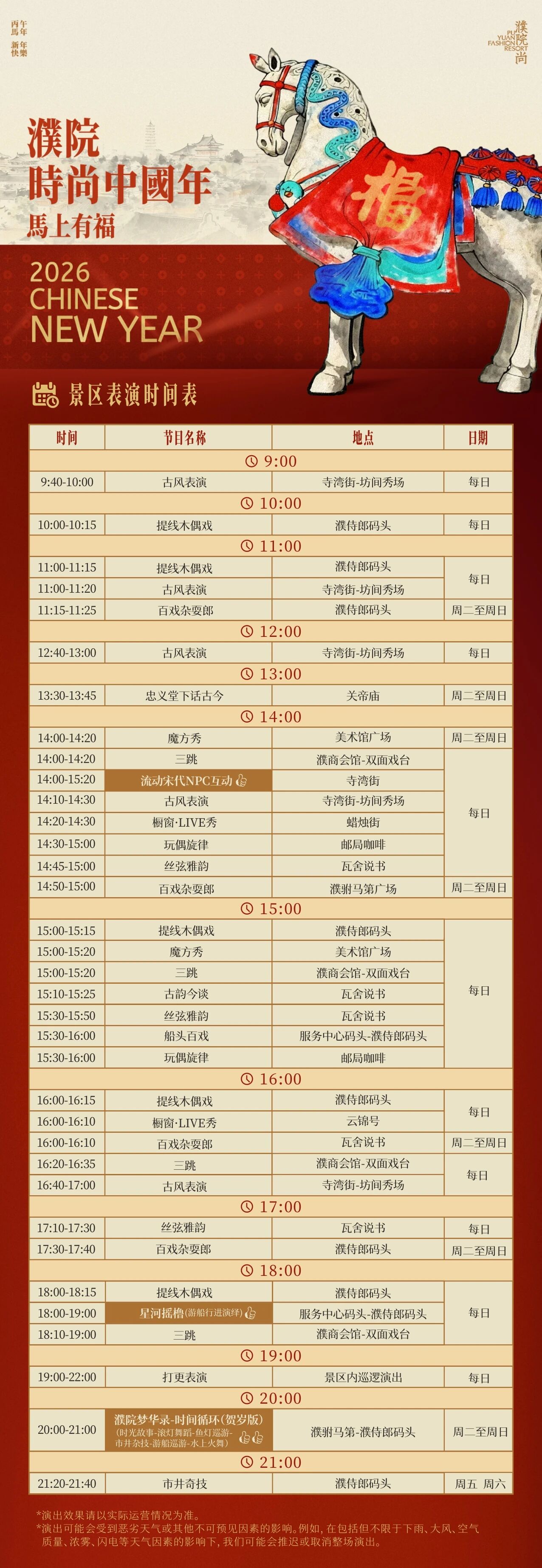 非遗互动组:14:30-16:00 跟随流动宋代NPC游逛寺湾街,参与投壶、飞花令互动;14:50-15:00(周二至周日)濮驸马第广场看百戏杂耍郎,还能和艺人学一招小杂技