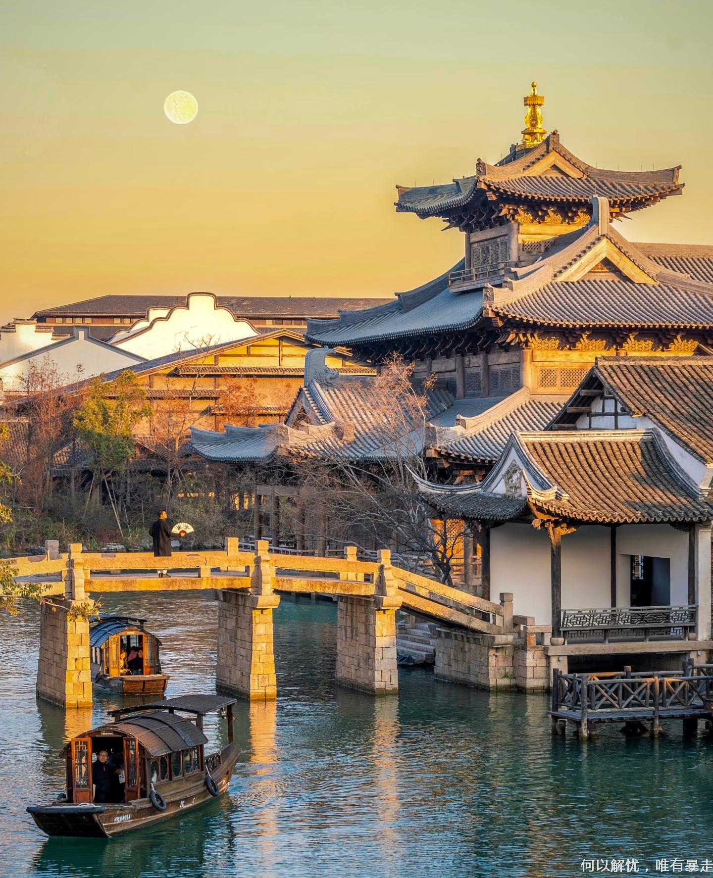 穿搭小贴士:古镇整体为宋制建筑风格,建议穿着汉服前来拍照,在古桥、水巷、庙宇间能拍出穿越感十足的大片