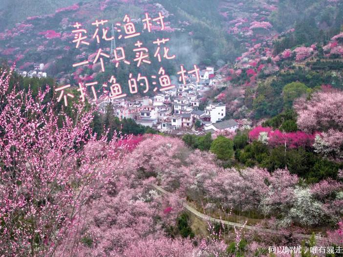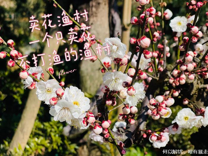 08:00 坐景交车到达卖花渔村(自费单趟15元),景色由自然逐渐过渡到人文,既有青山绿水的自然之美,也有徽派建筑和盆景艺术的人文之韵。白墙黑瓦,被漫山遍野粉色、红色的梅林所围绕,成了中国立体山水画,美不胜收。