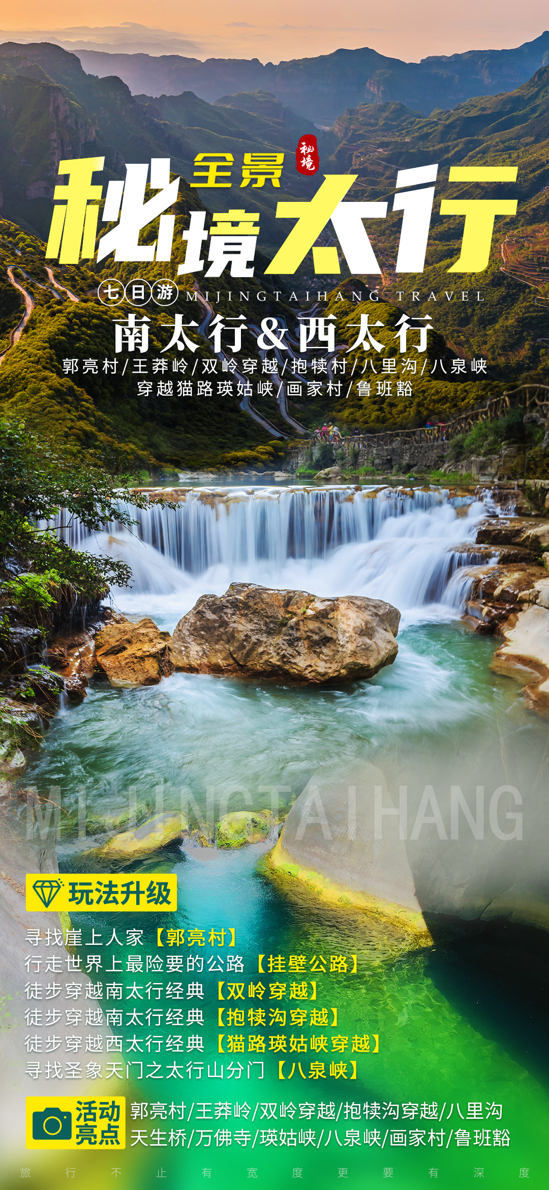 午餐后,我们前往太行山有“世界极品旅游资源”之称的王牌景区——【八泉峡】。景区内山路峰回路转,水路弯曲绵延,尽显北方三峡的神韵!小、中、大八泉的瀑布流水,让人流连忘返;【玉皇阁】的太行水墨山水画,让人震撼心灵;【天空之城】200多米悬崖上的玻璃栈道,让人肾上腺素飙升。真可谓是“人在云中走、仙在天上观”。