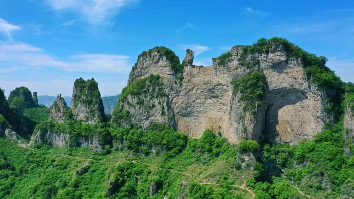 之后穿过【万佛寺】,一路下行,来到素有“北方张家界”之称的【瑛姑峡】。这里有堪比张家界峰林景观的喀斯特地貌。既有清瘦孤立的峰林,锷刺云天;也有天若一线的裂缝峡谷,扣人心弦。因未被开发,这里鲜为人知,人少景美,保存着最原始的风光。原始美景让人不得不感叹大自然的神奇造化。