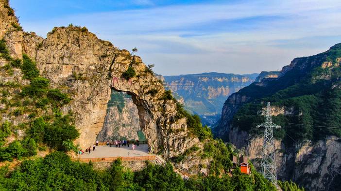 之后,我们前往【鲁班豁】徒步入口。远远望去,铁壁铜墙般的太行山被嵌入一个U型豁口,此豁口自古便是豫晋两省来往的主要通道之一。相传是鲁班见村民被大山阻隔,出行不便,抡斧劈山而成的“鲁班豁”。行走在数百年的古道之上,凉风习习,浮云变换,如入仙境,鲁班梯的惊险绝伦让人惊叹不已。登上豁口,左边是一望无际的华北平原,右边是层峦叠嶂的太行山脉,截然不同的景观让人怦然心动。饱览美景之后,徒步下山。