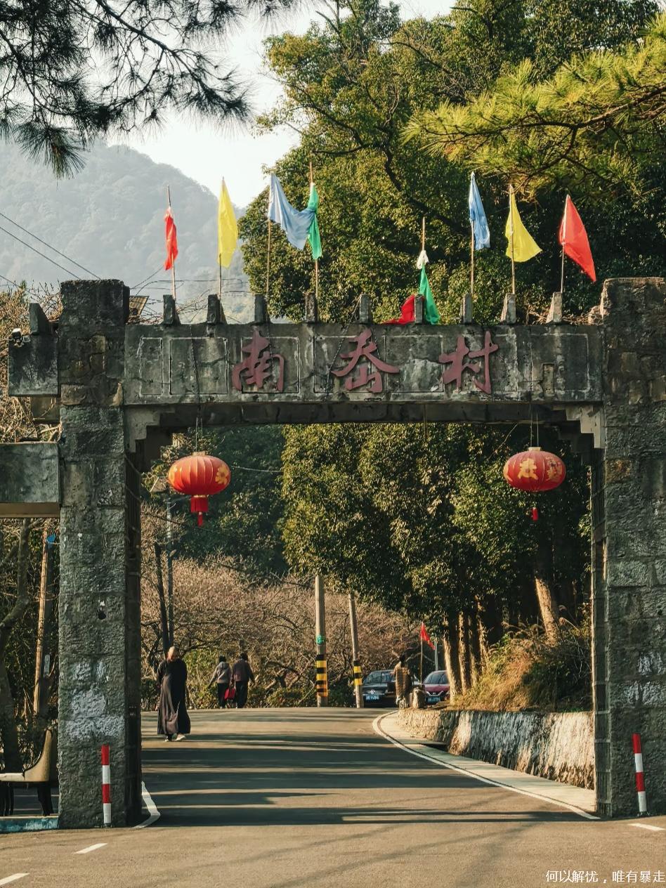 11:00左右抵达南岙村。该村自古被誉为“长寿之乡”,三面环山,梅香满村。村口的百年梅园是浙江现存最古老的梅园之一,红梅、白梅错落其间,部分古梅树龄已超百年。我们将在此热身,随后穿村徒步,开启一段赏梅寻春之旅。