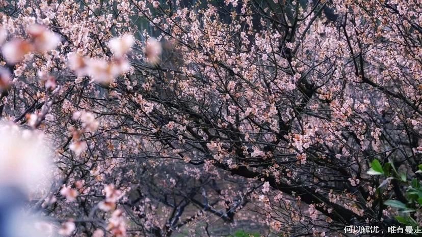 14:30左右,抵达【淦里水库】,这里漫山遍野的梅花清雅烂漫,随风飘落的花瓣更添诗意,漫步其间宛若走入画卷,是拍照与赏春的绝佳之处。