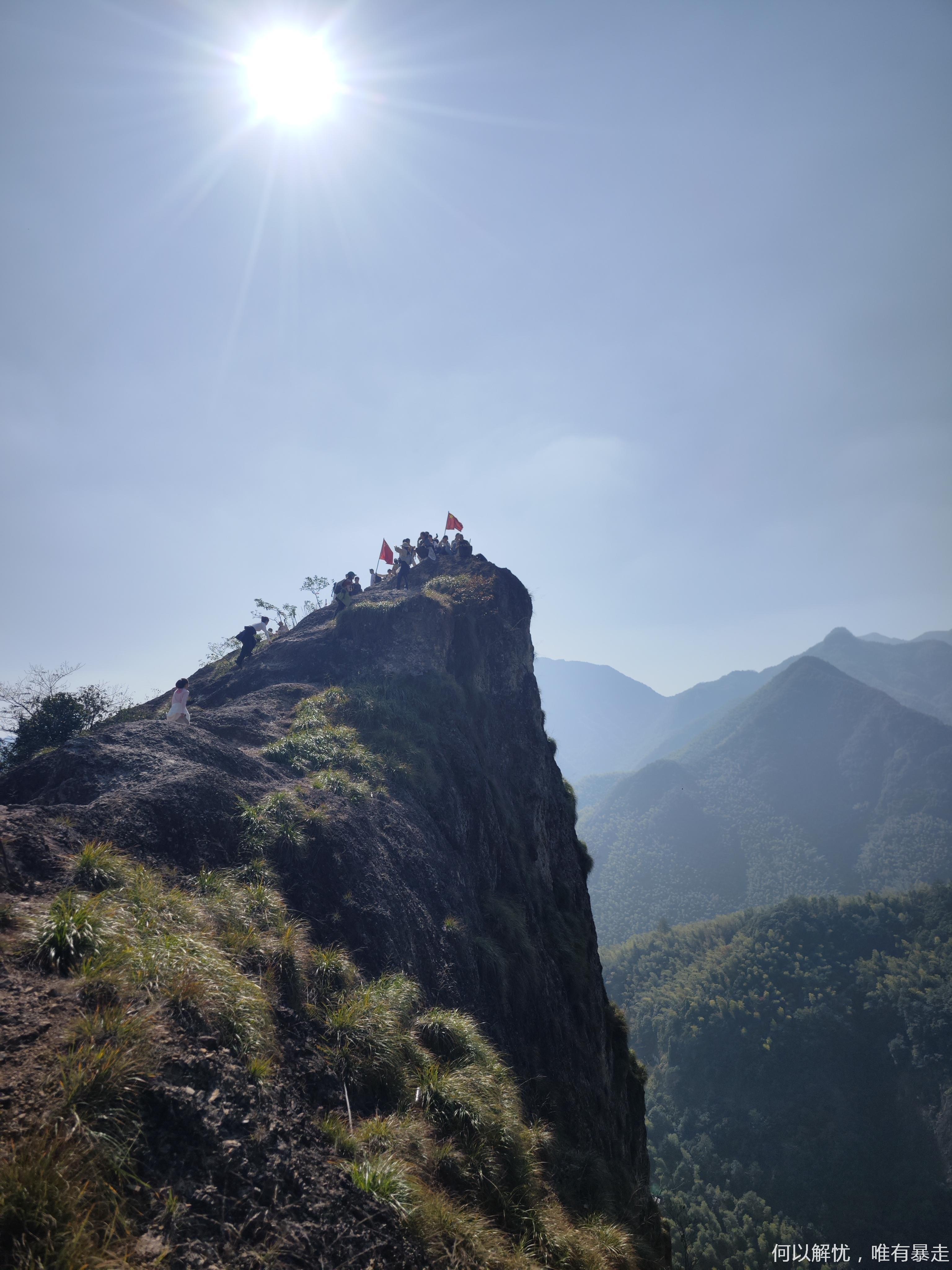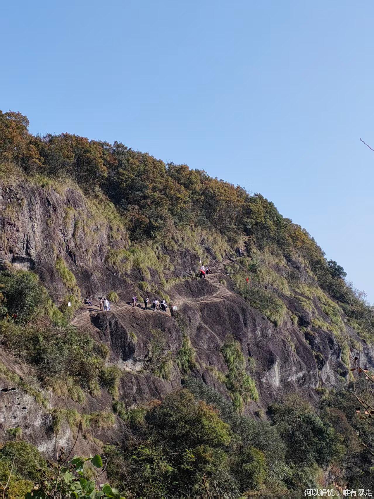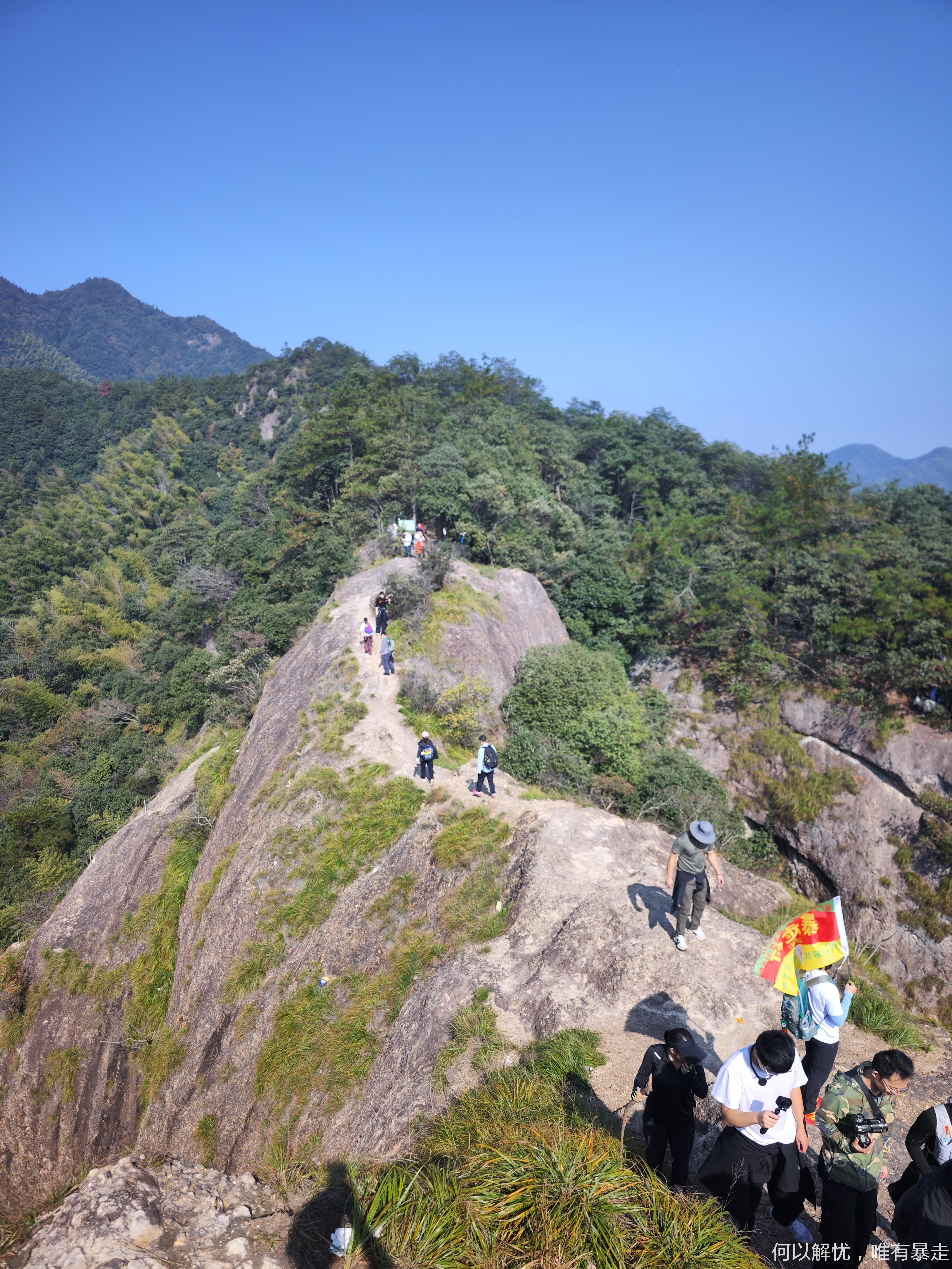 亮点3:一览众山小:登顶后远可眺望青山与蓝天,近可细看陡峭山岩裸露的特殊地貌,此种地貌是诸暨山形的特色之一