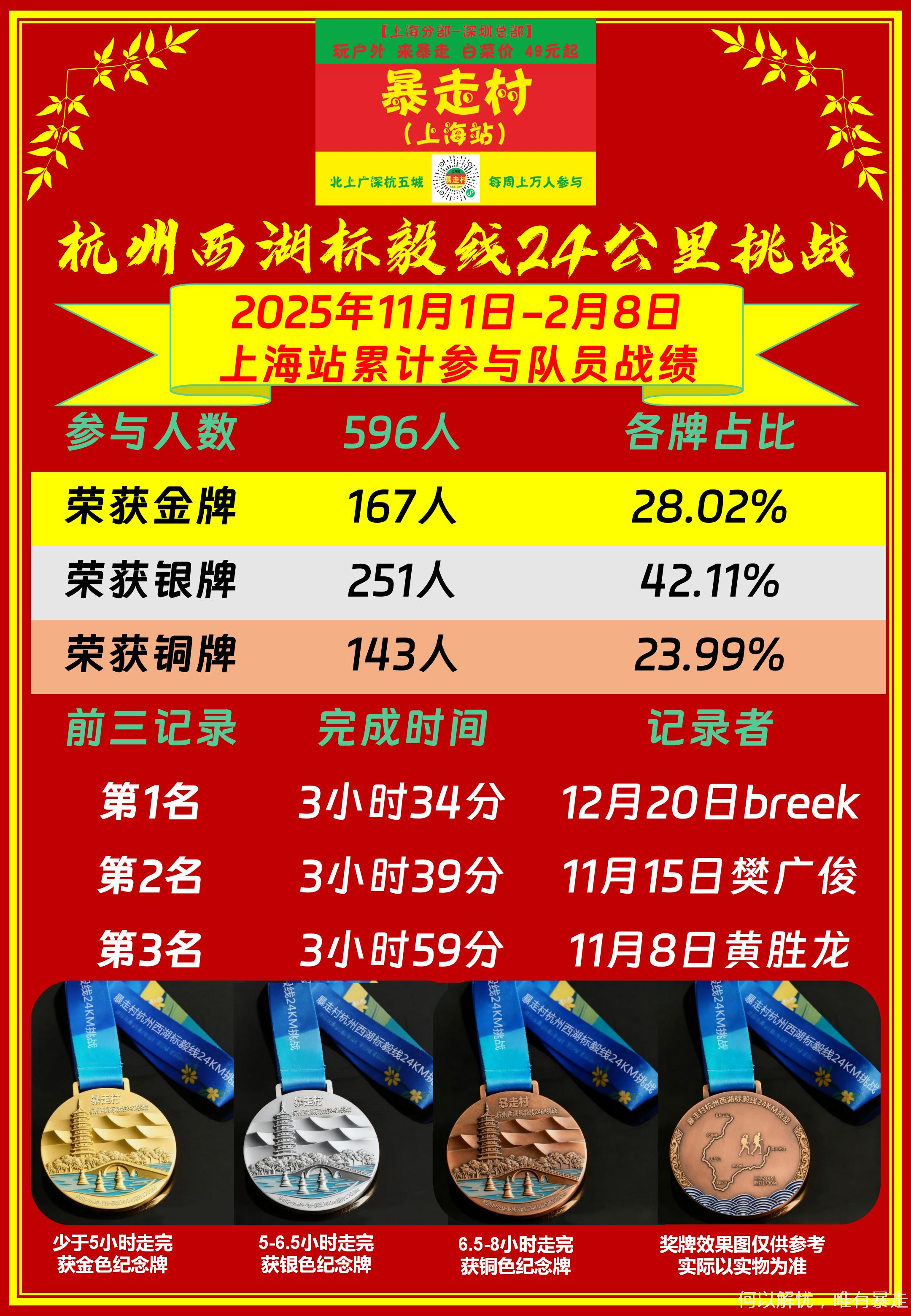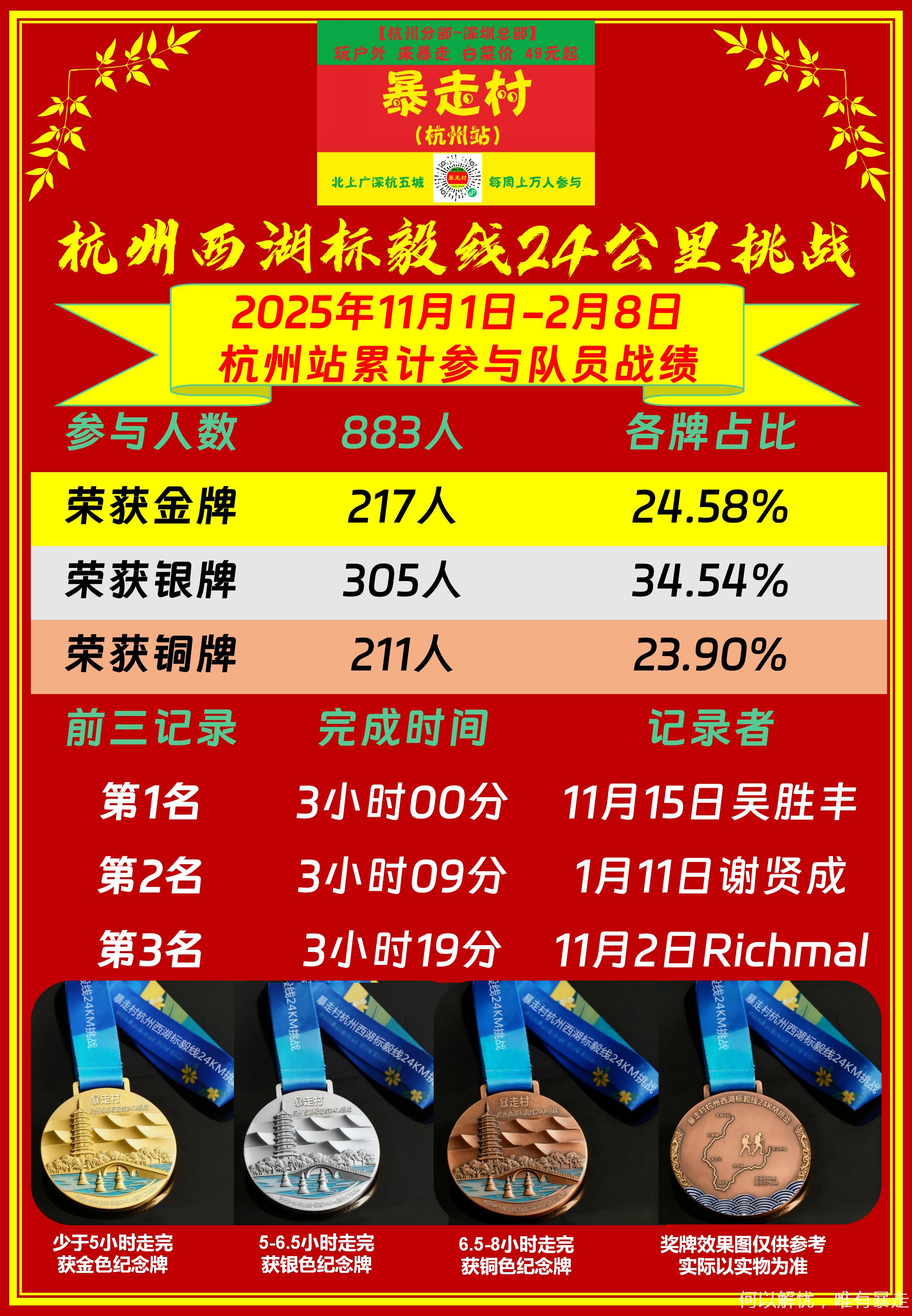 西湖标毅线24公里挑战 2025年11月1日-2026年2月8日 累计参与队员战绩! [复制链接]