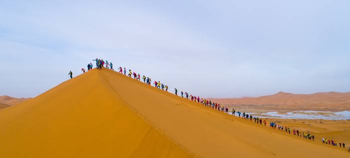 7:00起床,早餐后收拾完营地,翻越大沙山,今日领队选择合适的滑沙地点进行滑沙;