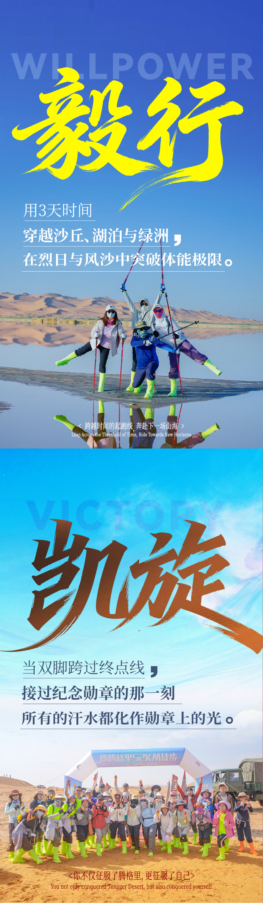 01 此腾格里徒步活动不同于传统旅游线路,对参加队员的安全、环保和团队协作精神要求较高,要求体现中华传统美德。全程徒步过程中,严禁丢弃任何不可降解垃圾,组委会提供大型编织袋垃圾袋,所有垃圾请归拢至垃圾袋,由物资车统一运出沙漠。