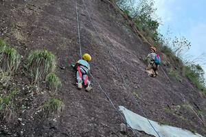 11:30 随后抵达山中营地午餐(山上可提供简单面条,需要自费)营地午餐后 在教练的指导下穿戴装备,开始索降,体验空中飞檐走壁!!全员索降后前往卧龙洞、开启新一场的地心历险!随后沿着盘山公路下行至豹子崖,拉着绳子绳降而下